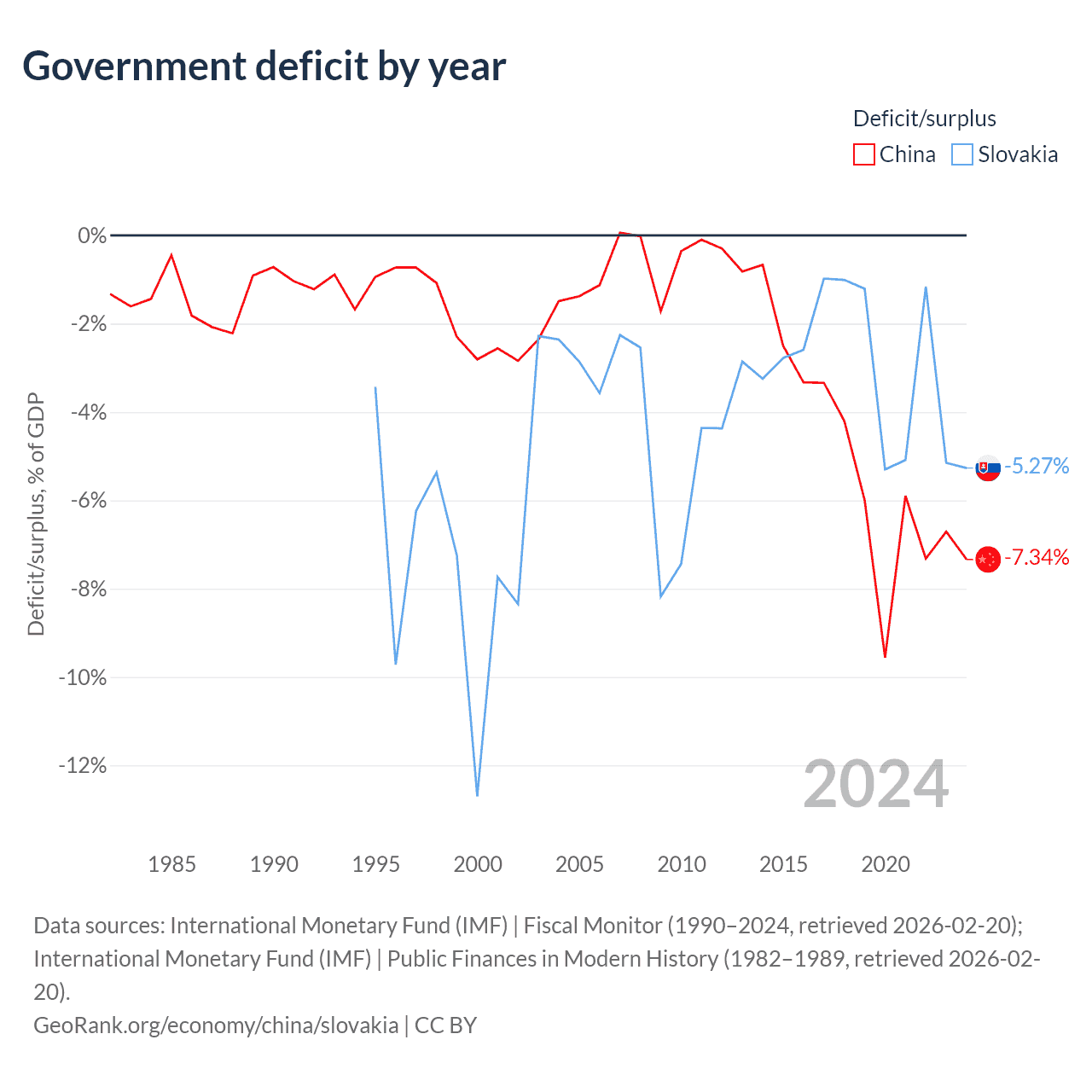 - International Monetary Fund (IMF) | Fiscal Monitor (1990–2024, retrieved 2026-02-20)