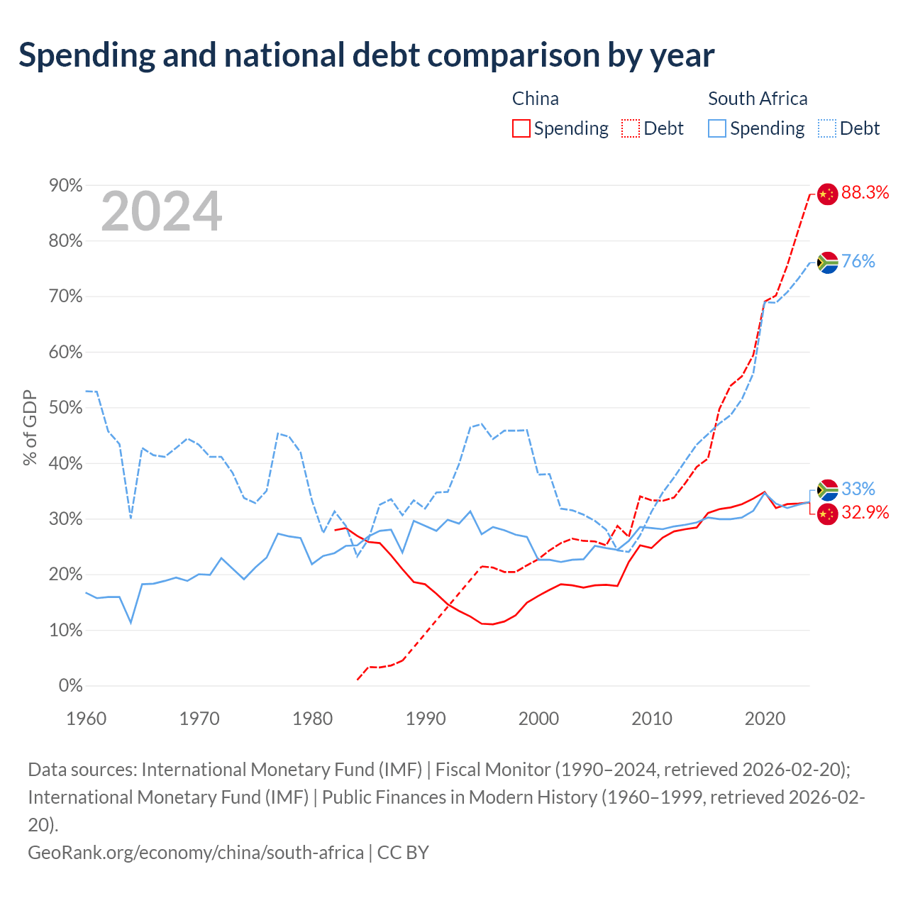 - International Monetary Fund (IMF) | Fiscal Monitor (1990–2024, retrieved 2026-02-20)