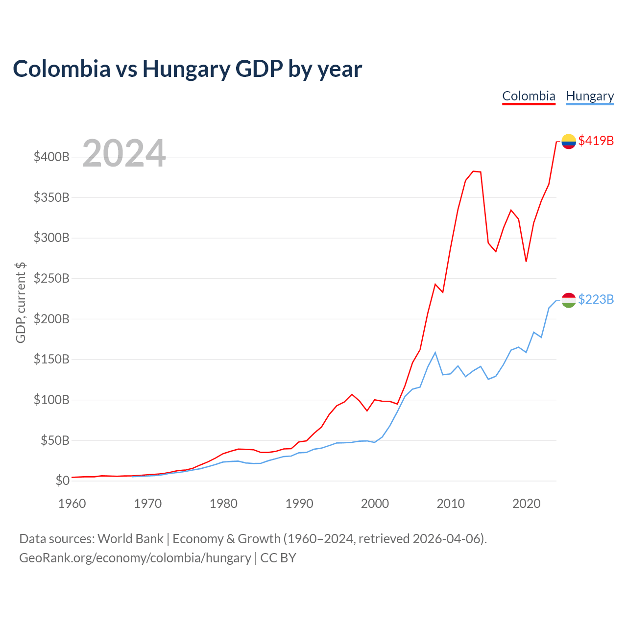 Colombia vs Hungary GDP by year
