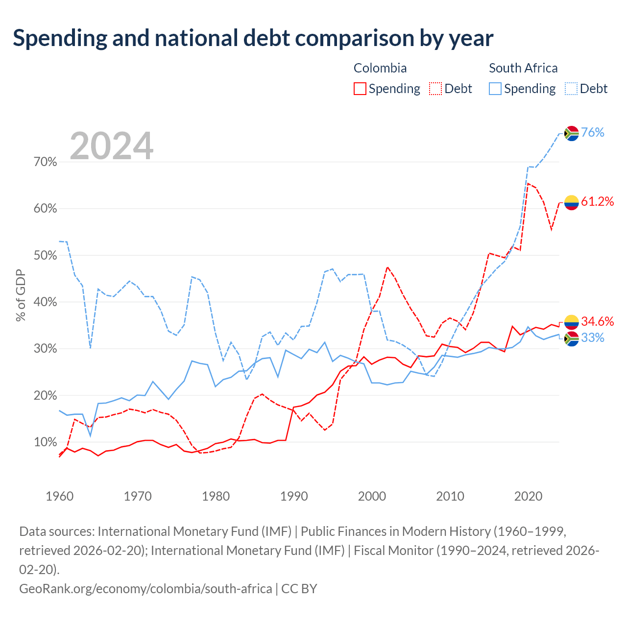 Colombia has $256B in government debt (61.2% of GDP), compared to $305B (76% of GDP) in South Africa.
