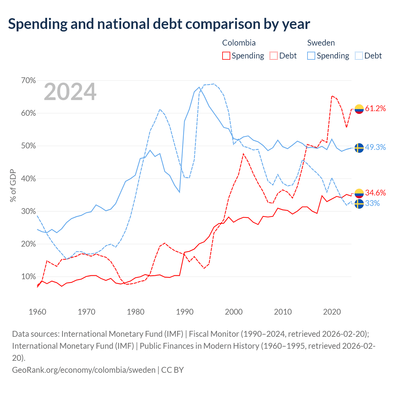 Colombia has $256B in government debt (61.2% of GDP), compared to $199B (33% of GDP) in Sweden.
