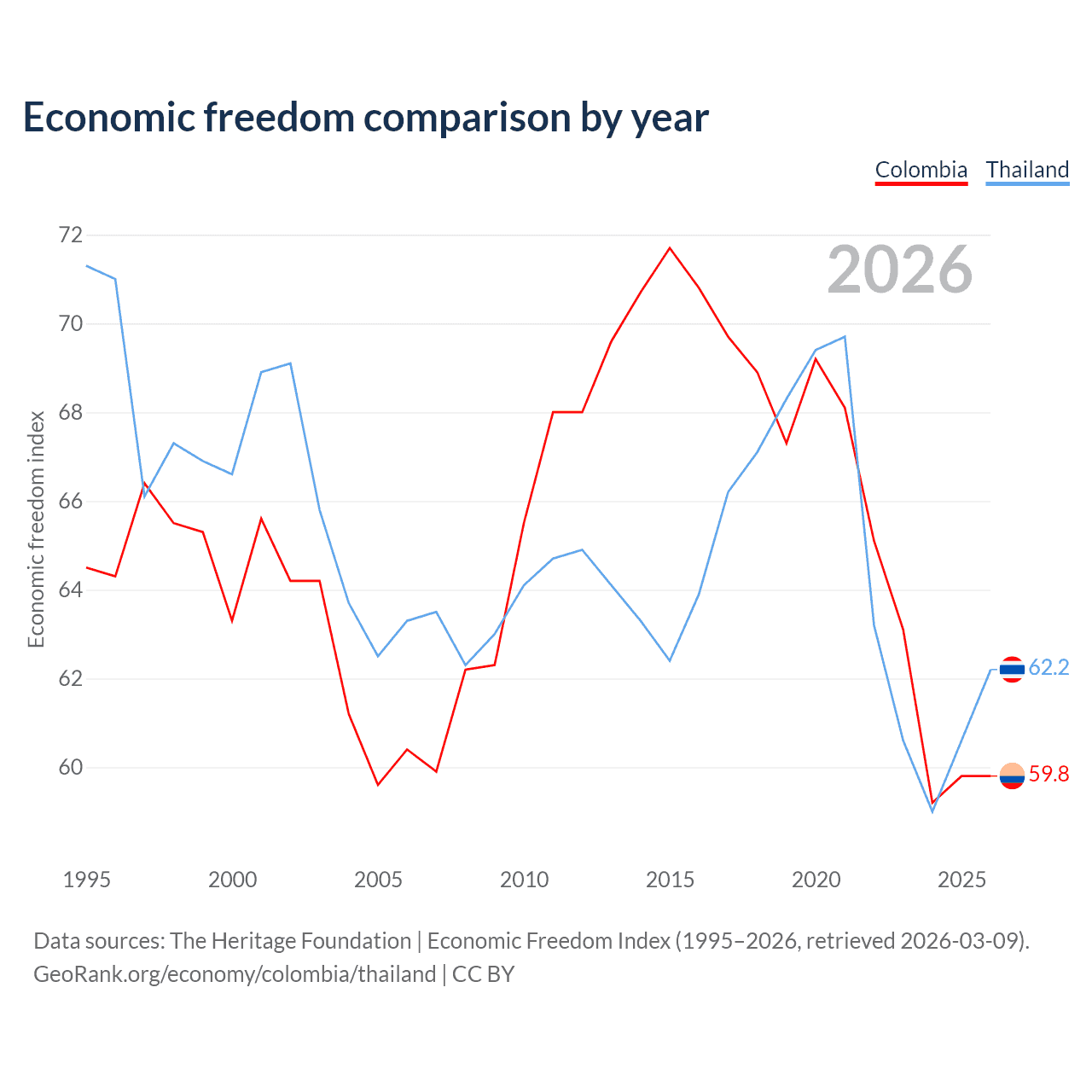 Data sources: The Heritage Foundation | Economic Freedom Index (1995–2026, retrieved 2026-03-09).