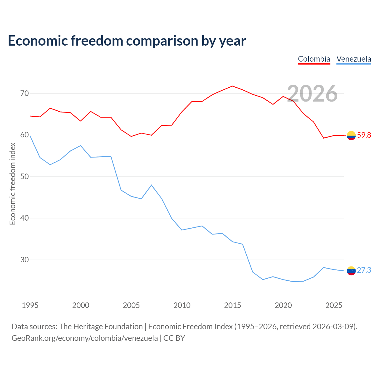 Data sources: The Heritage Foundation | Economic Freedom Index (1995–2026, retrieved 2026-03-09).