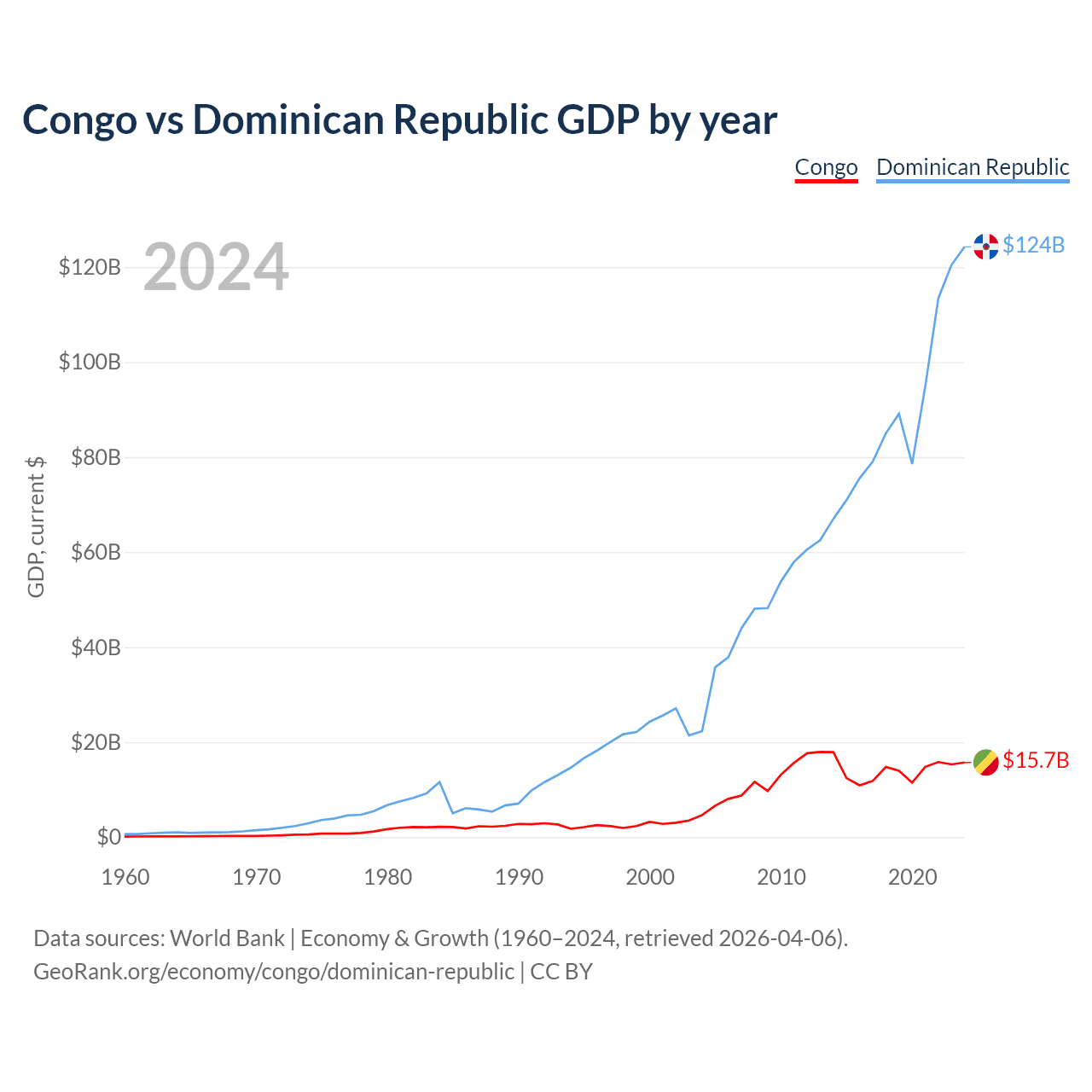 Congo vs Dominican Republic GDP by year