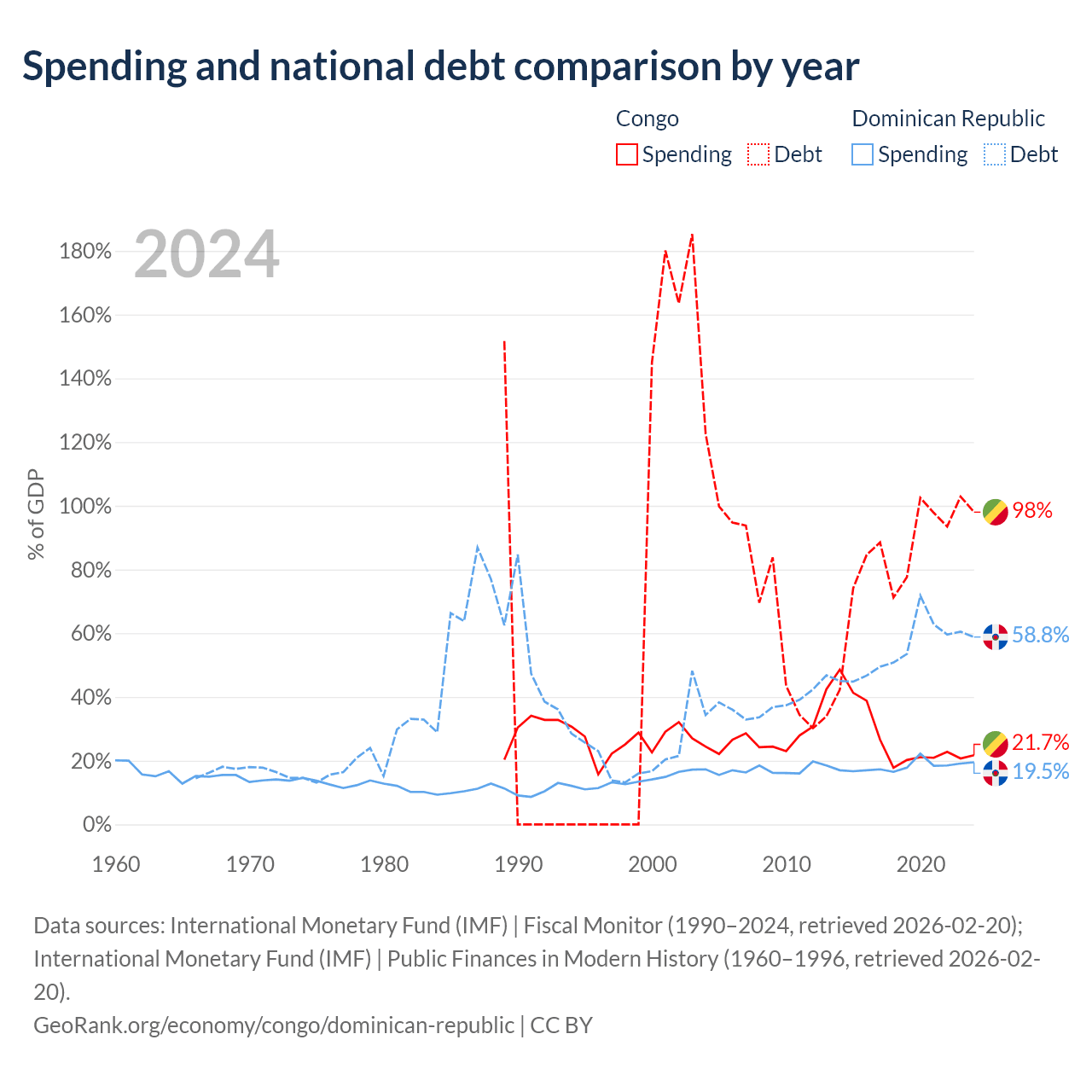 The Congo has $15.4B in government debt (98% of GDP), compared to $73.1B (58.8% of GDP) in the Dominican Republic.