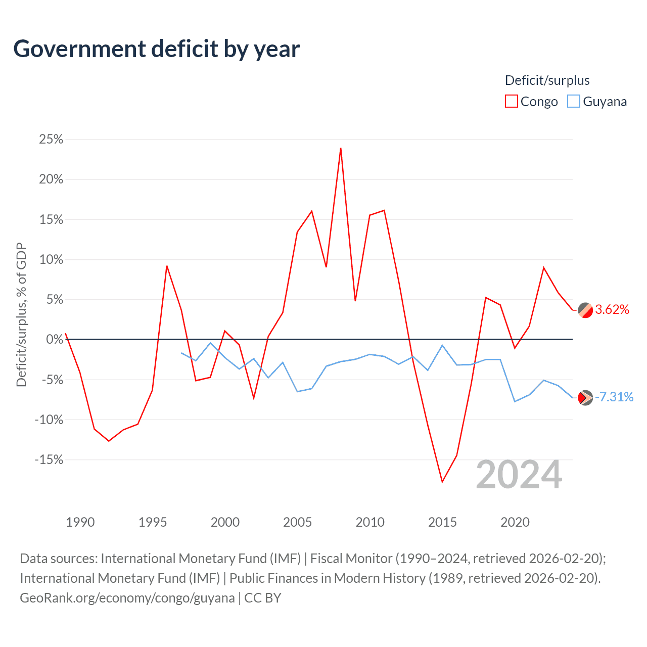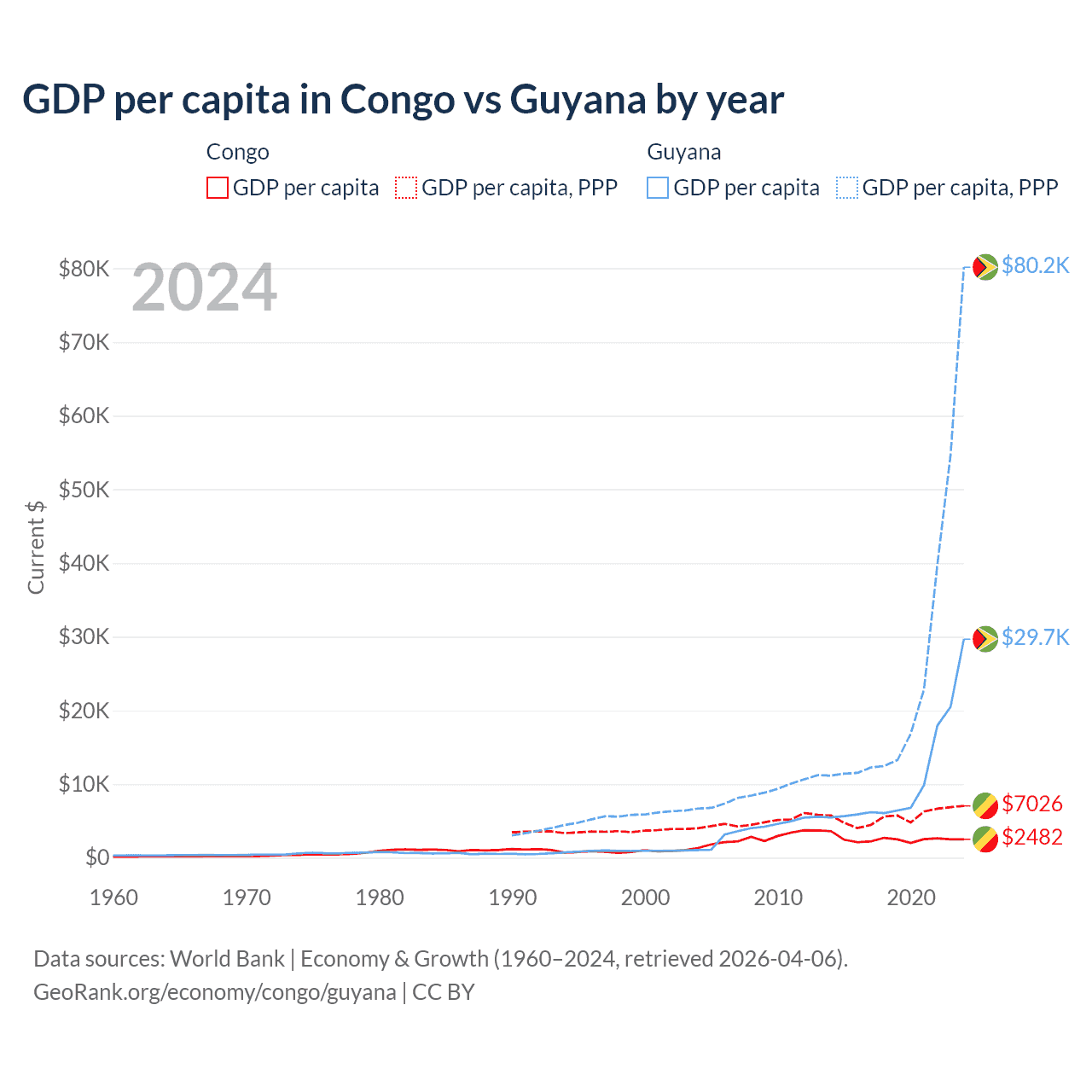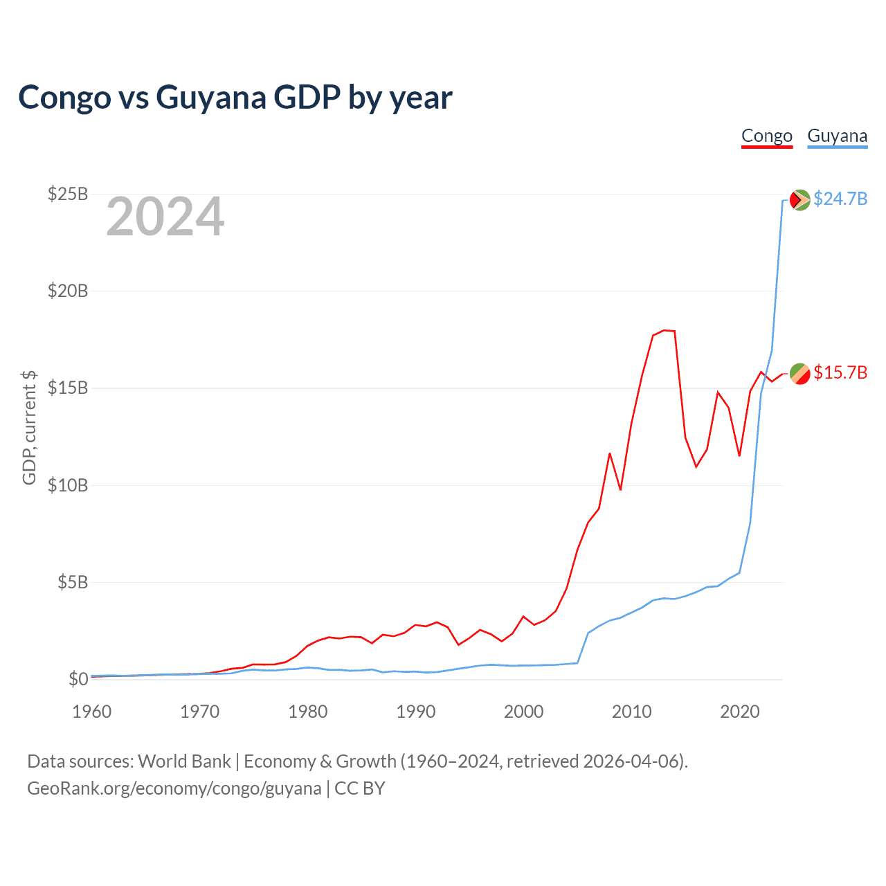 Congo vs Guyana GDP by year