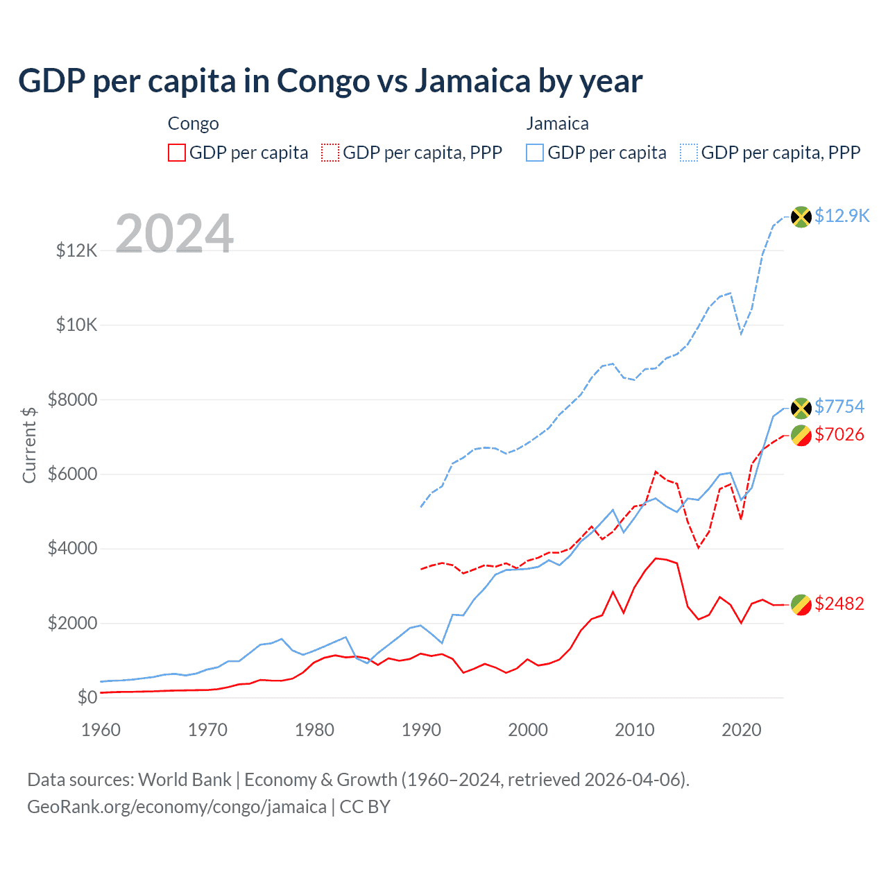 Congo vs Jamaica GDP by year