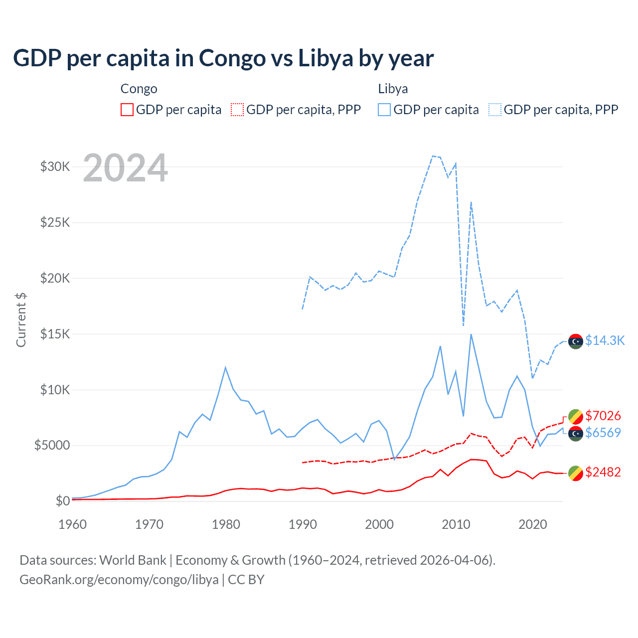 Congo vs Libya GDP by year