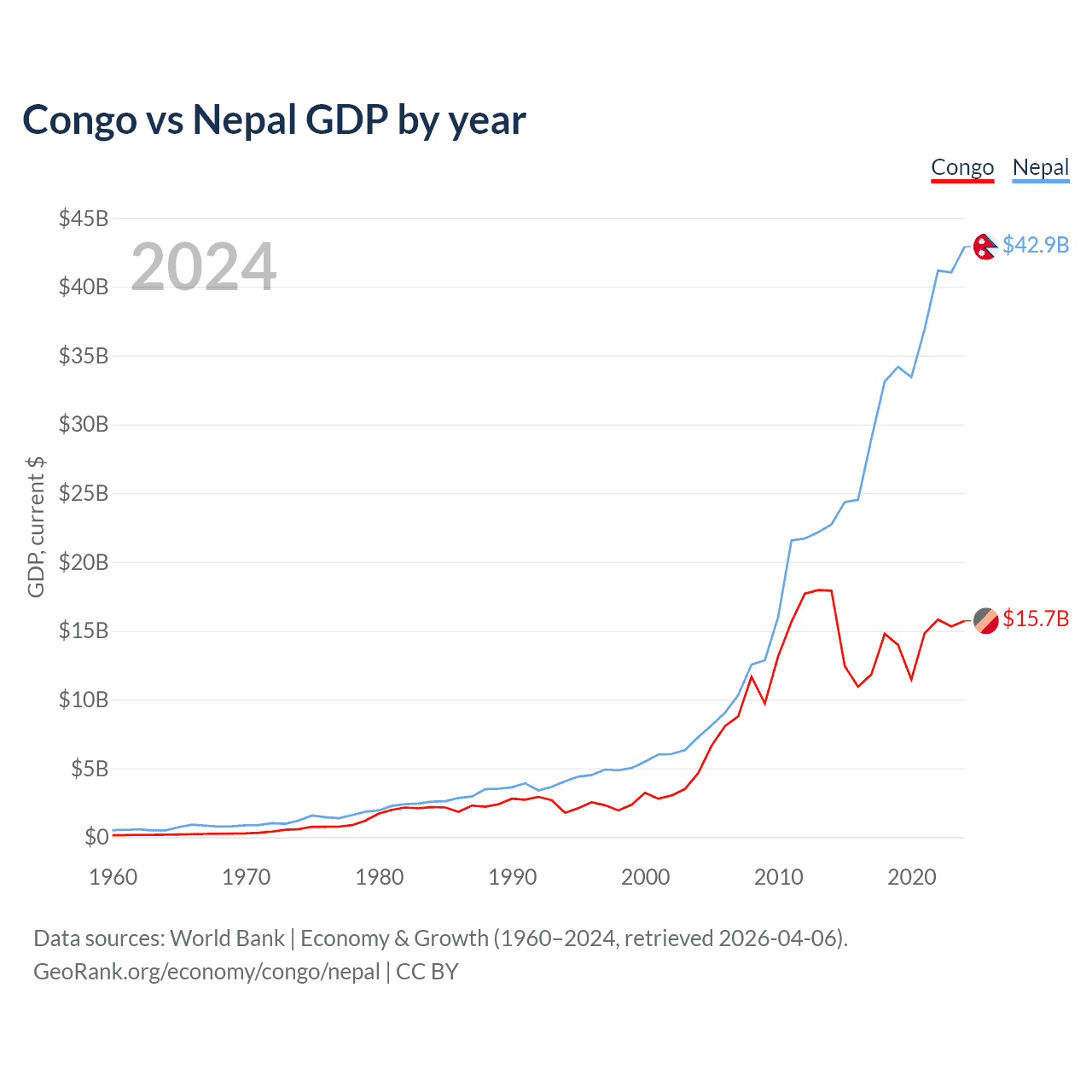 Congo vs Nepal GDP by year