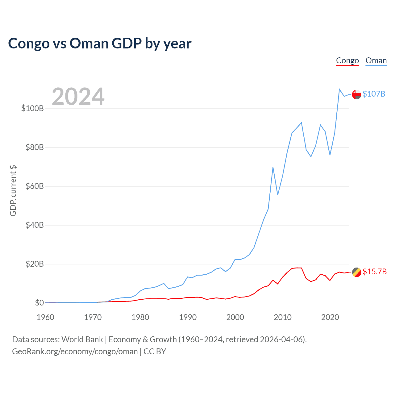 Congo vs Oman GDP by year
