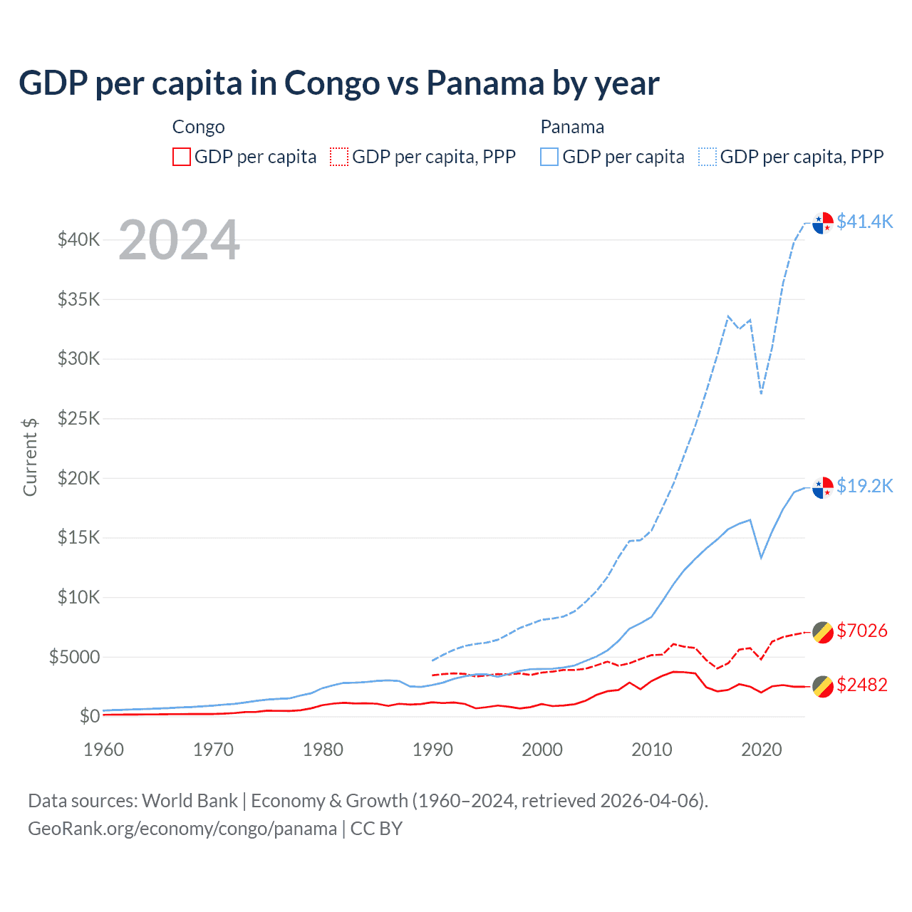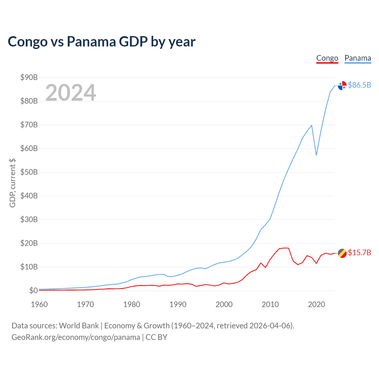 Congo vs Panama GDP by year