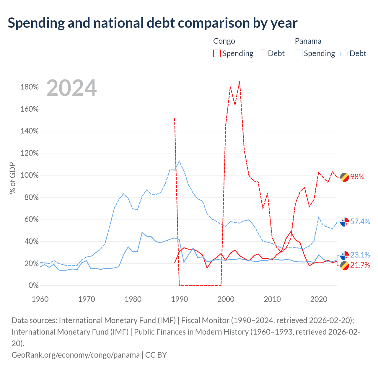 The Congo has $15.4B in government debt (98% of GDP), compared to $49.6B (57.4% of GDP) in Panama.