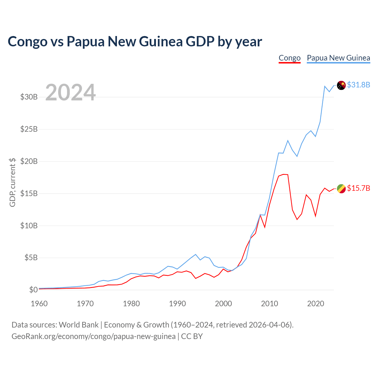 Congo vs Papua New Guinea GDP by year