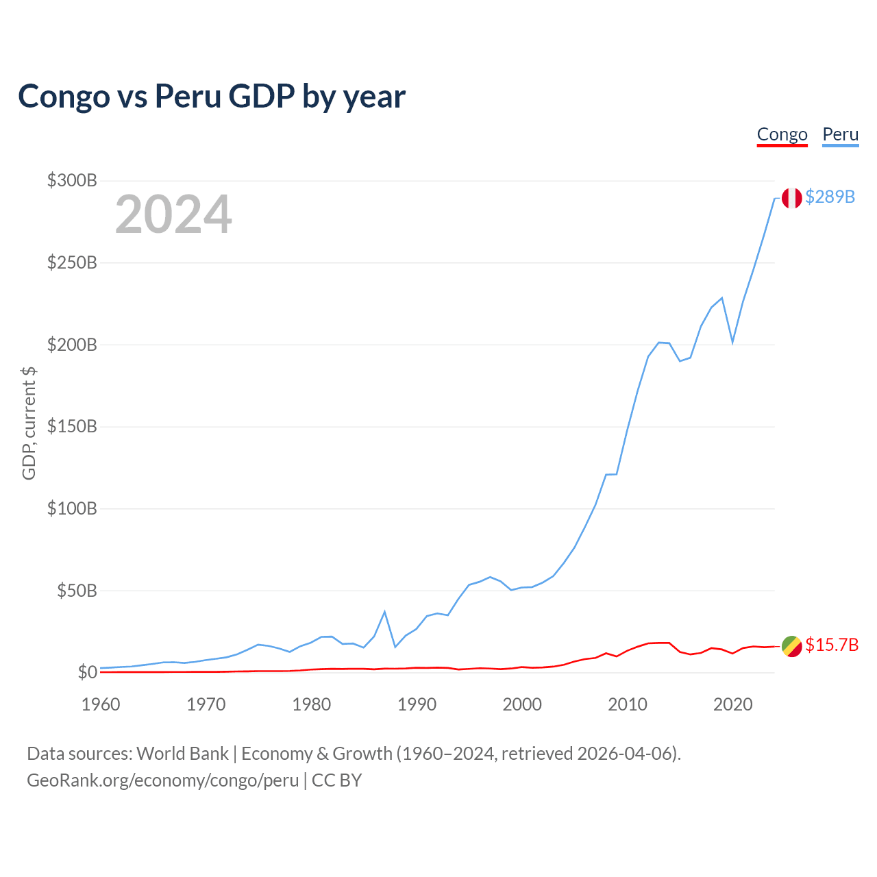 Congo vs Peru GDP by year