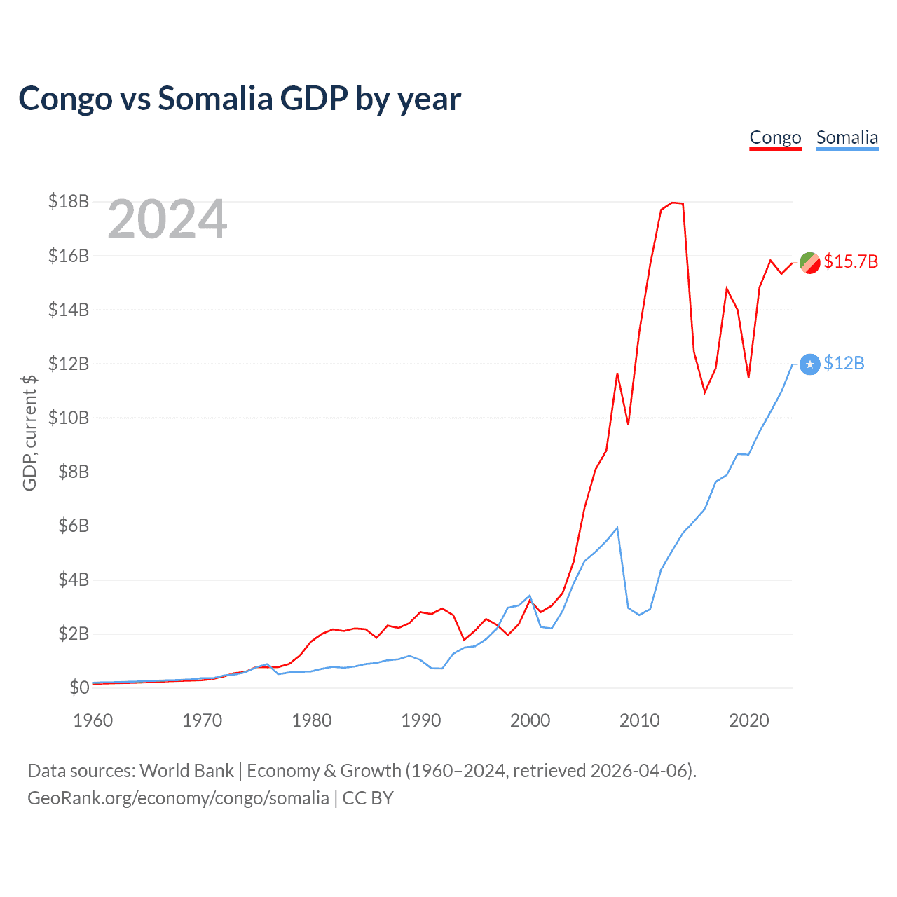 Congo vs Somalia GDP by year
