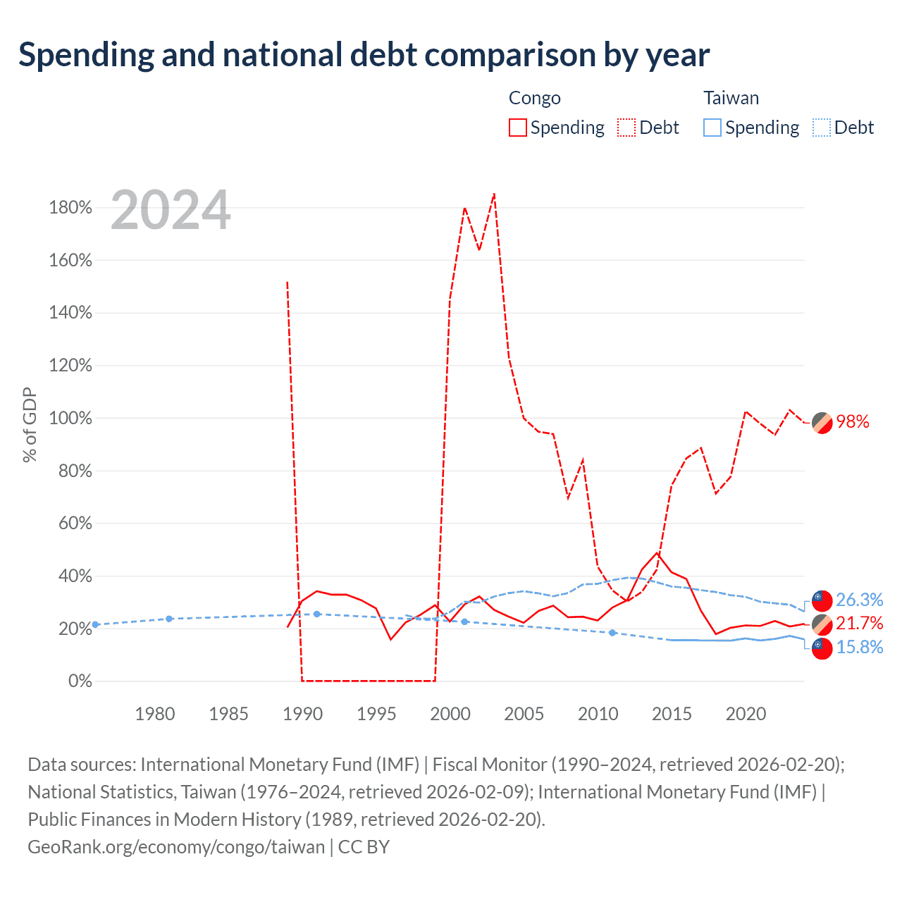 The Congo has $15.4B in government debt (98% of GDP), compared to $211B (26.3% of GDP) in Taiwan.