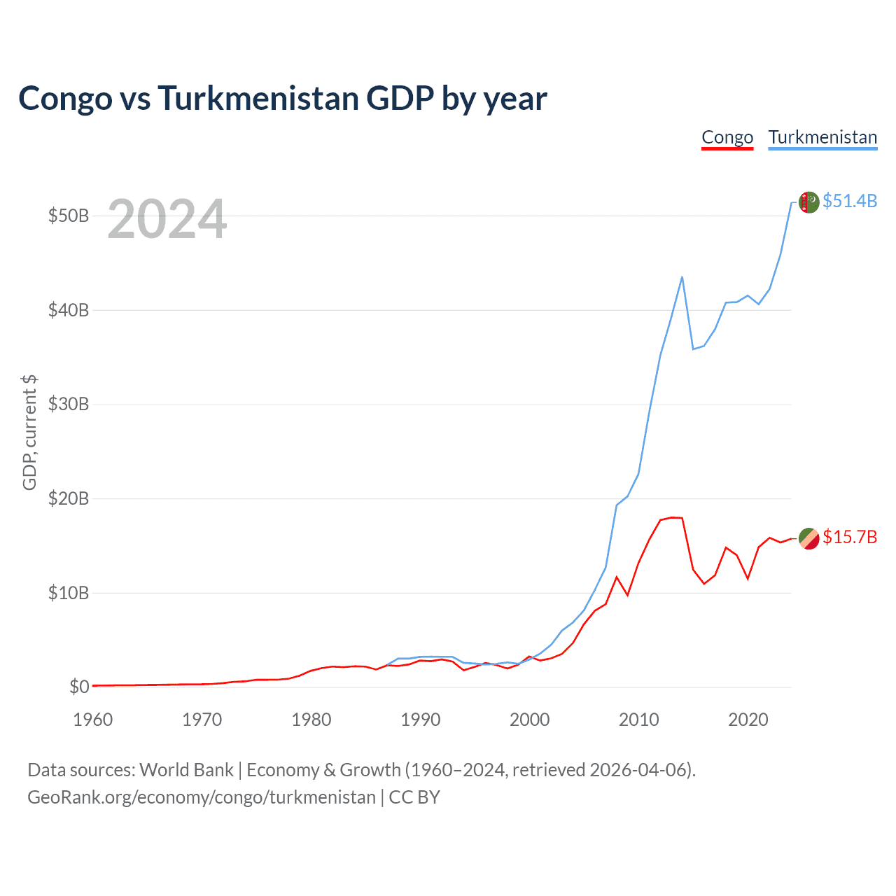 Congo vs Turkmenistan GDP by year