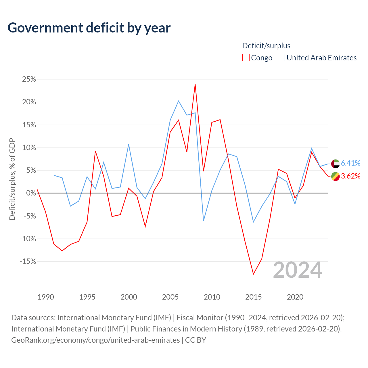 - International Monetary Fund (IMF) | Fiscal Monitor (1990–2024, retrieved 2026-02-20)