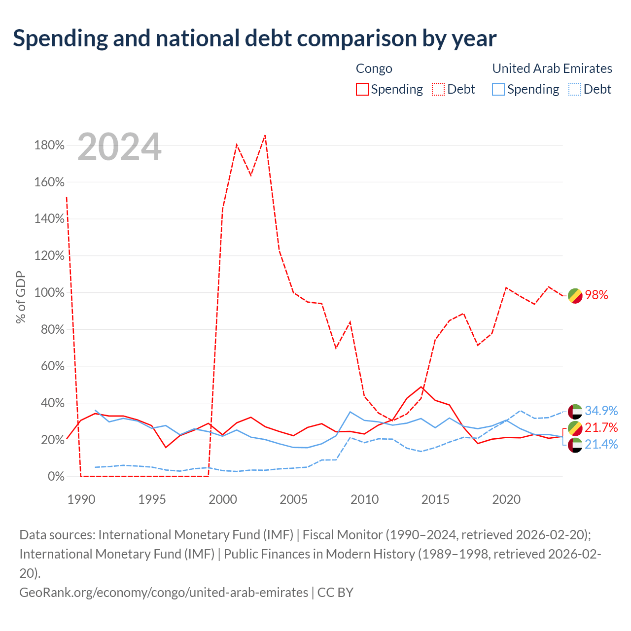 The Congo has $15.4B in government debt (98% of GDP), compared to $193B (34.9% of GDP) in the United Arab Emirates.