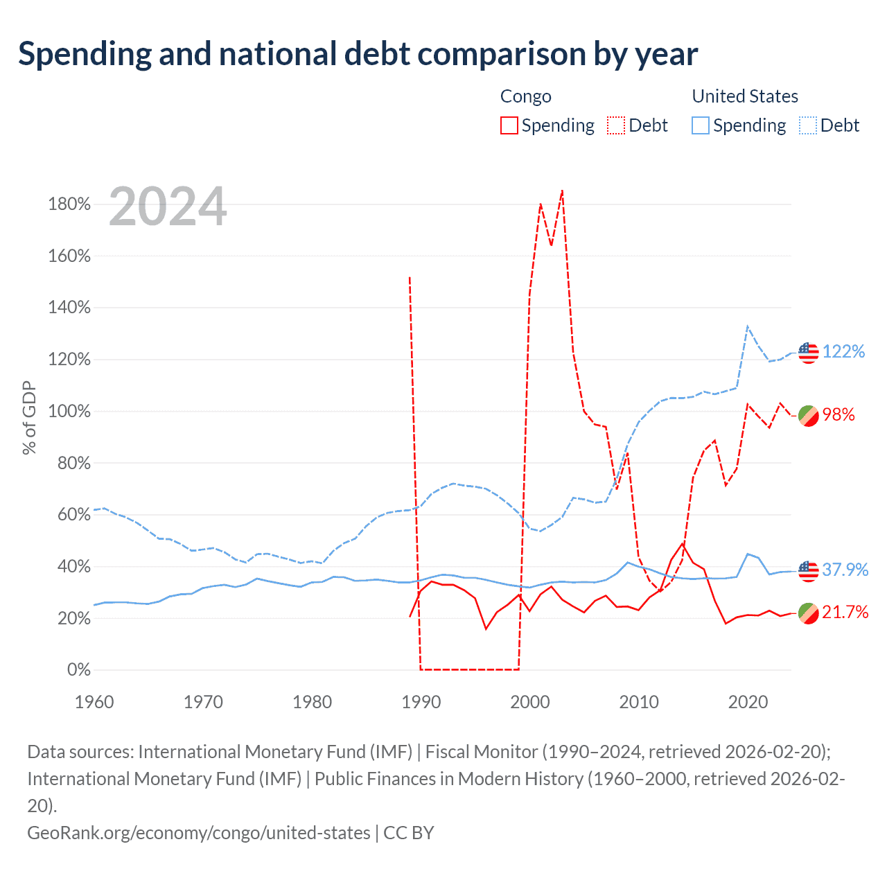 The Congo has $15.4B in government debt (98% of GDP), compared to $35.2T (122.3% of GDP) in the United States.
