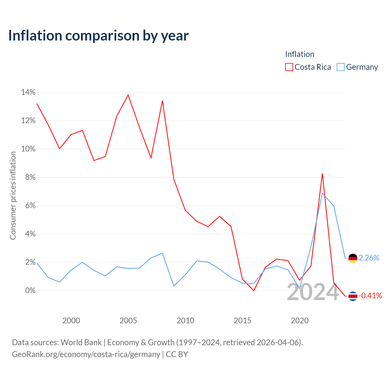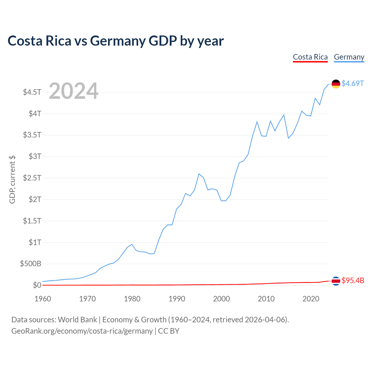 Costa Rica vs Germany GDP by year