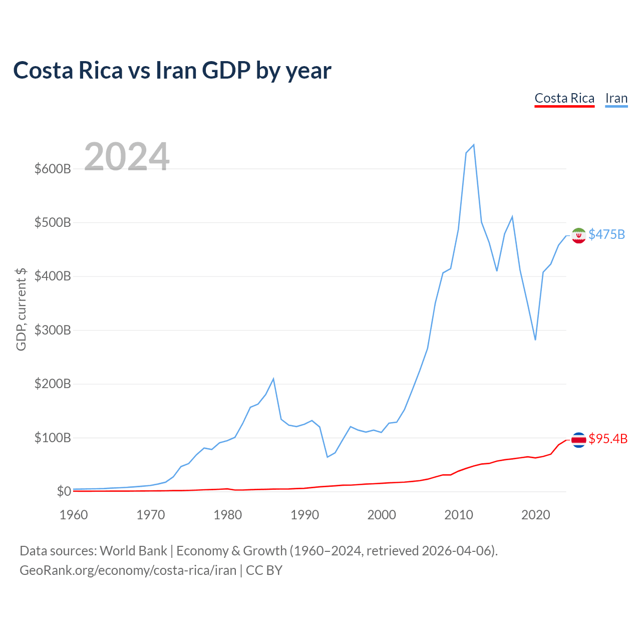 Costa Rica vs Iran GDP by year