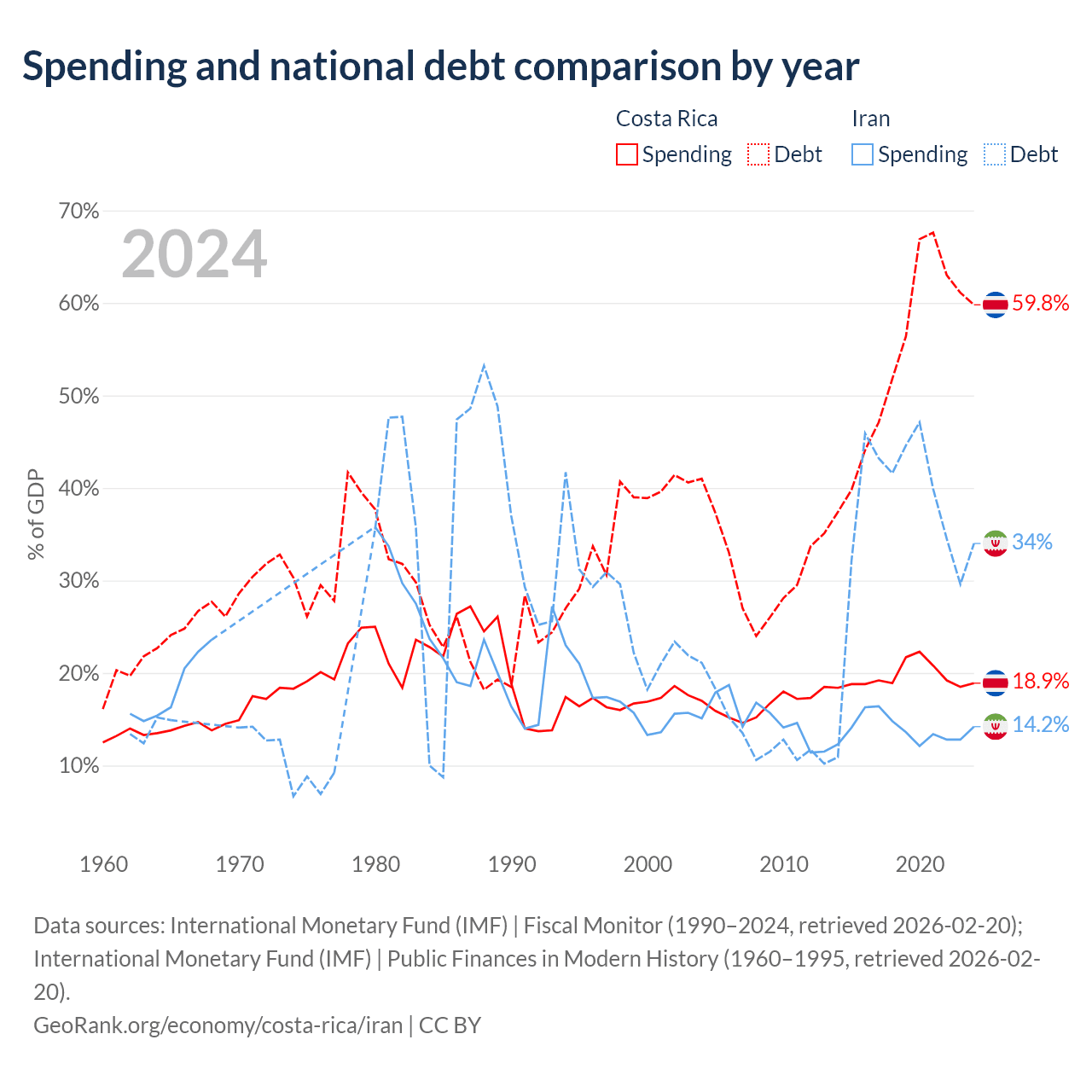 Costa Rica has $57B in government debt (59.8% of GDP), compared to $162B (34% of GDP) in Iran.