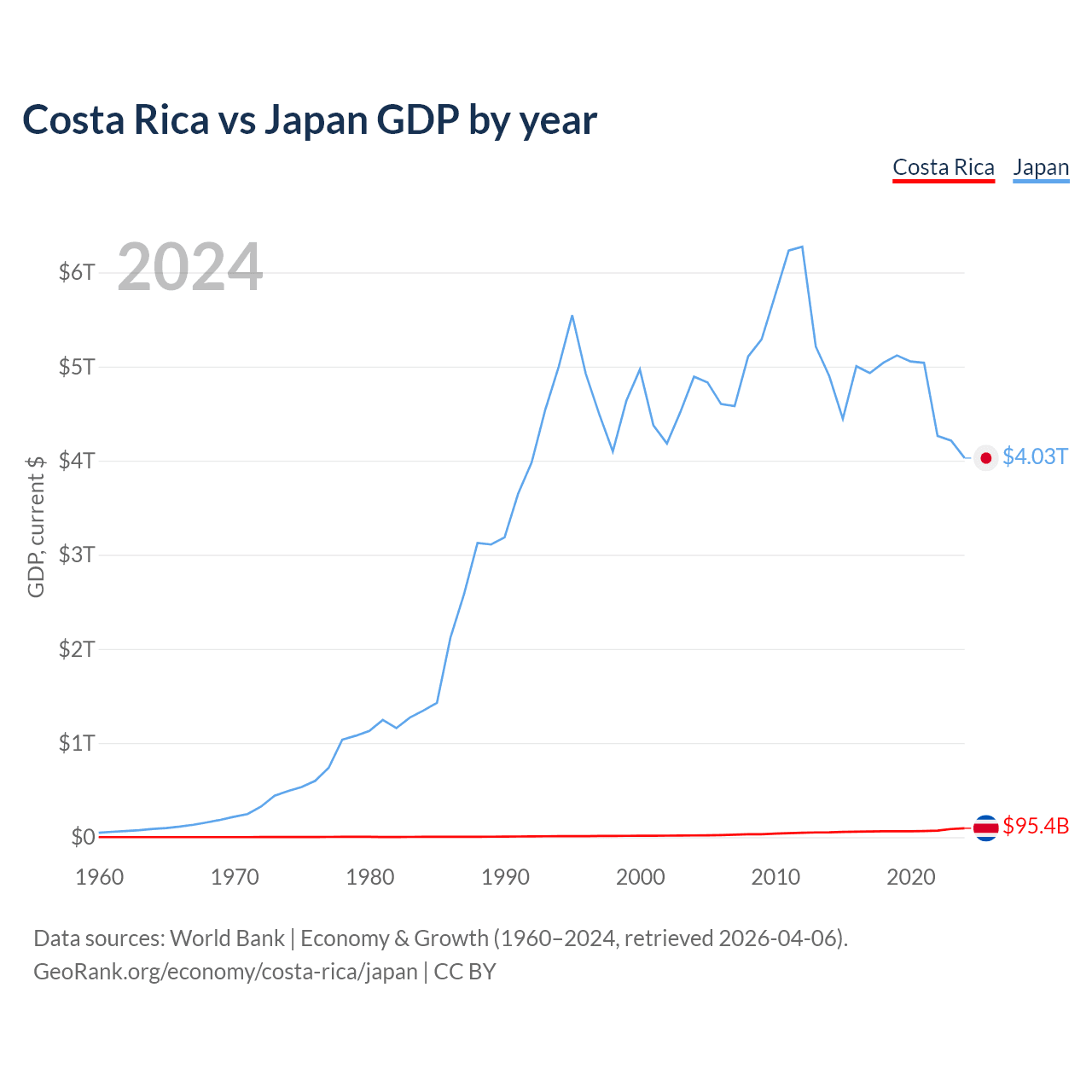 Costa Rica vs Japan GDP by year