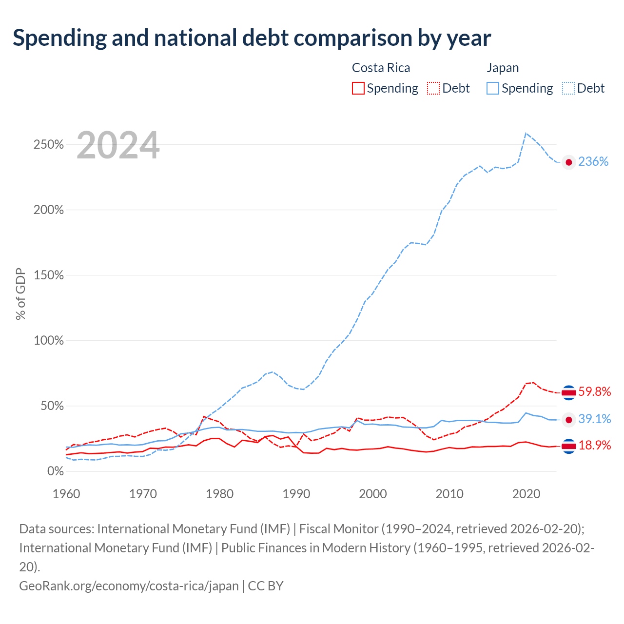 Costa Rica has $57B in government debt (59.8% of GDP), compared to $9.51T (236.1% of GDP) in Japan.
