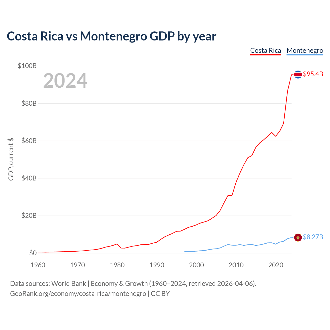 Data sources: World Bank | Economy & Growth (1960–2024, retrieved 2026-04-06).