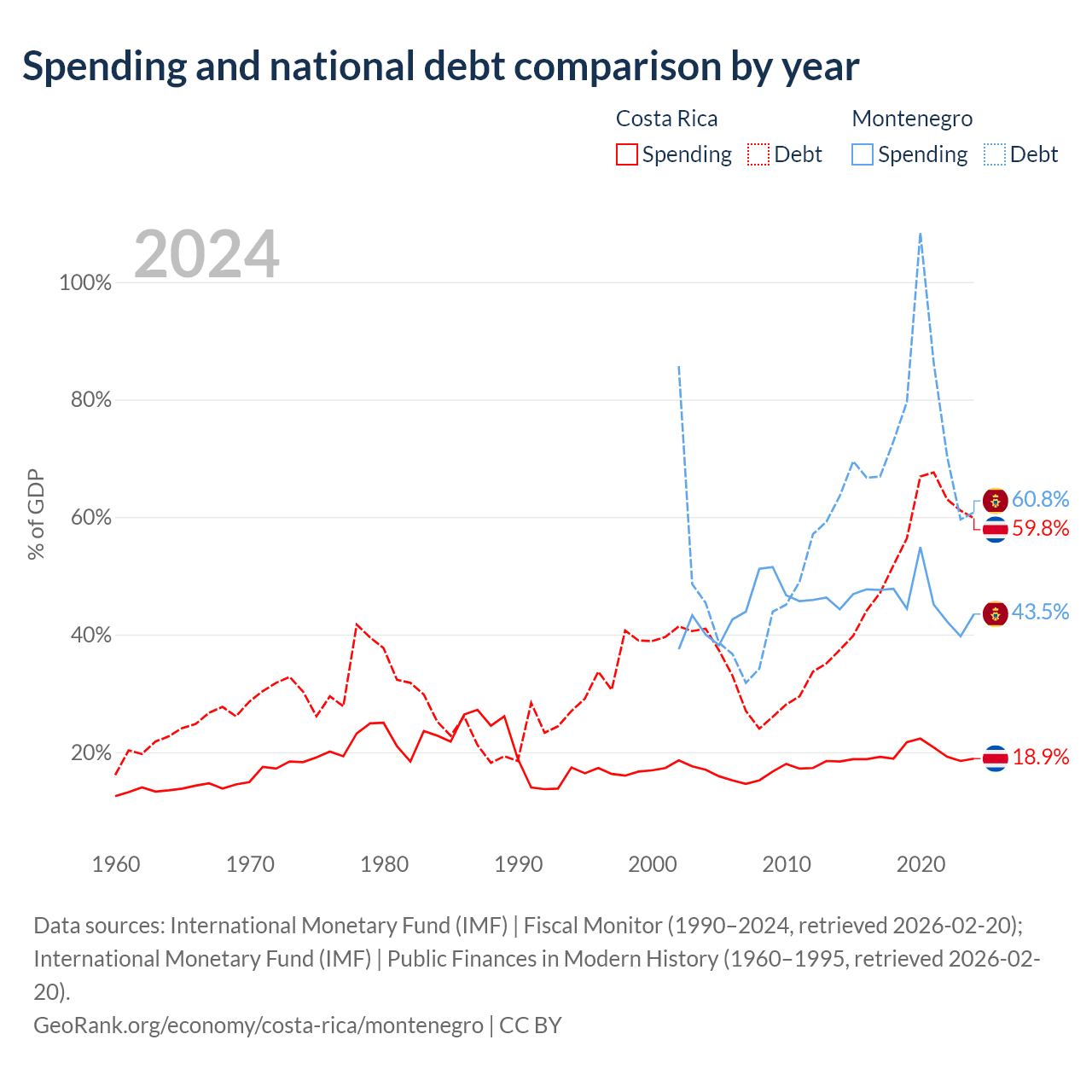 Costa Rica has $57B in government debt (59.8% of GDP), compared to $5.02B (60.8% of GDP) in Montenegro.