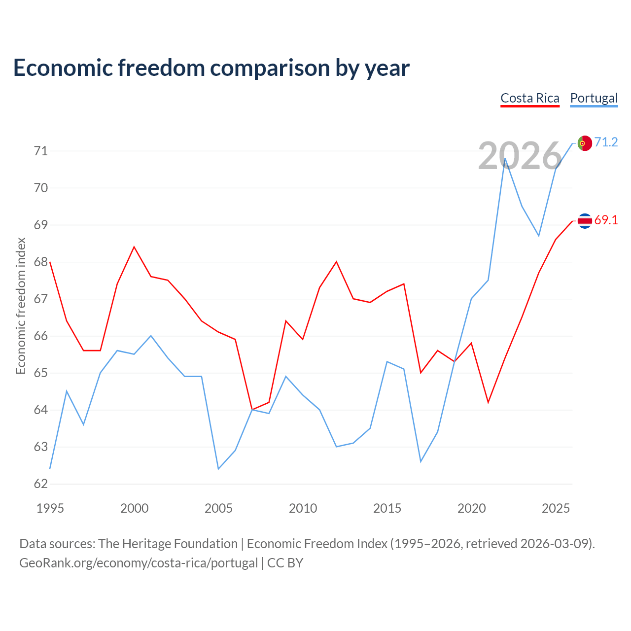 Data sources: The Heritage Foundation | Economic Freedom Index (1995–2026, retrieved 2026-03-09).