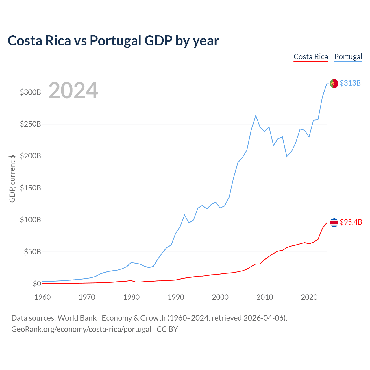 Costa Rica vs Portugal GDP by year