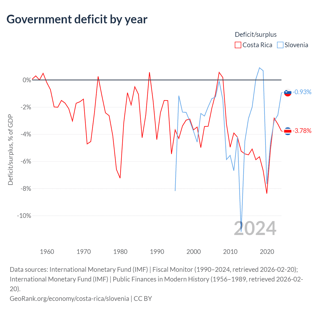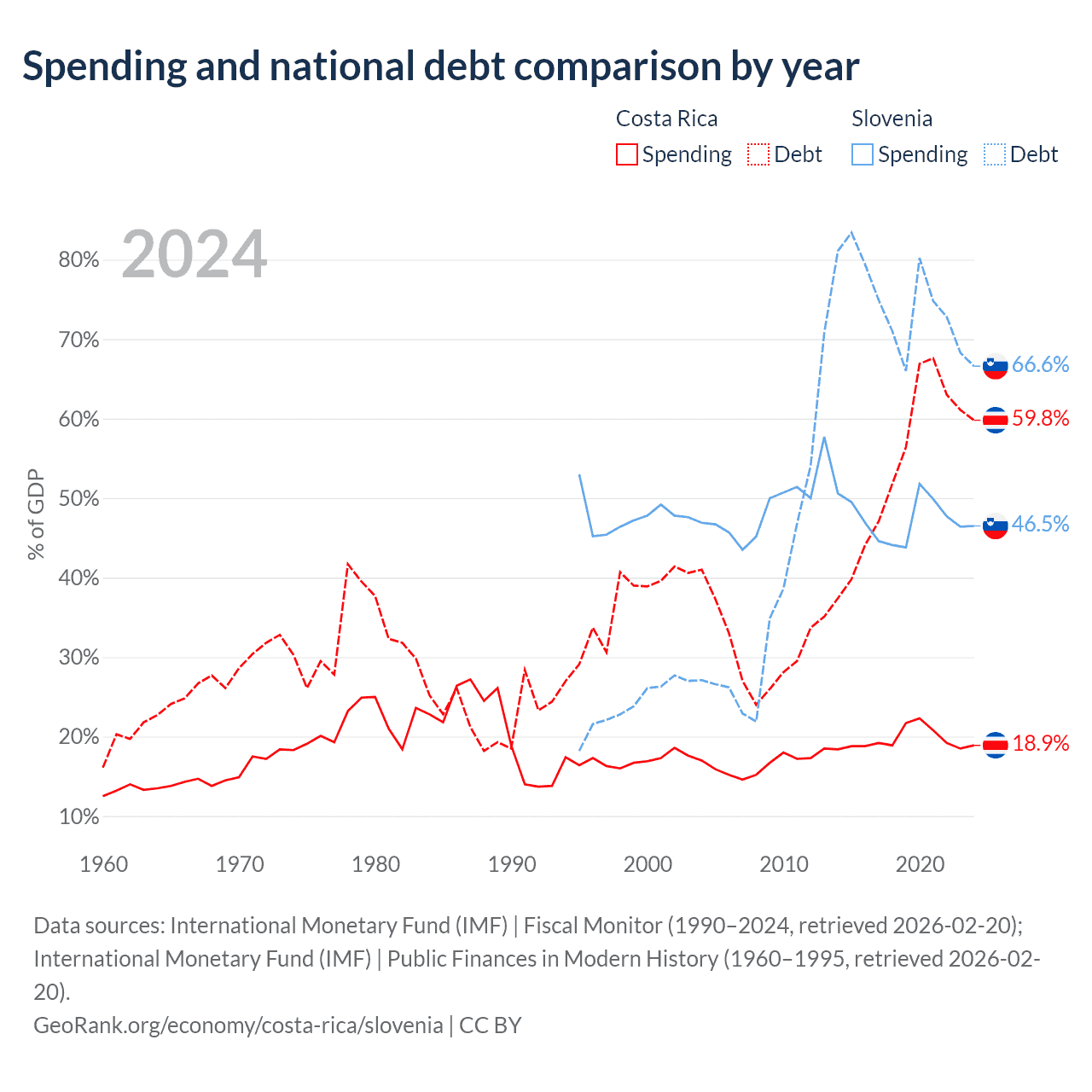 Costa Rica has $57B in government debt (59% of GDP), compared to $48.9B (66.7% of GDP) in Slovenia.