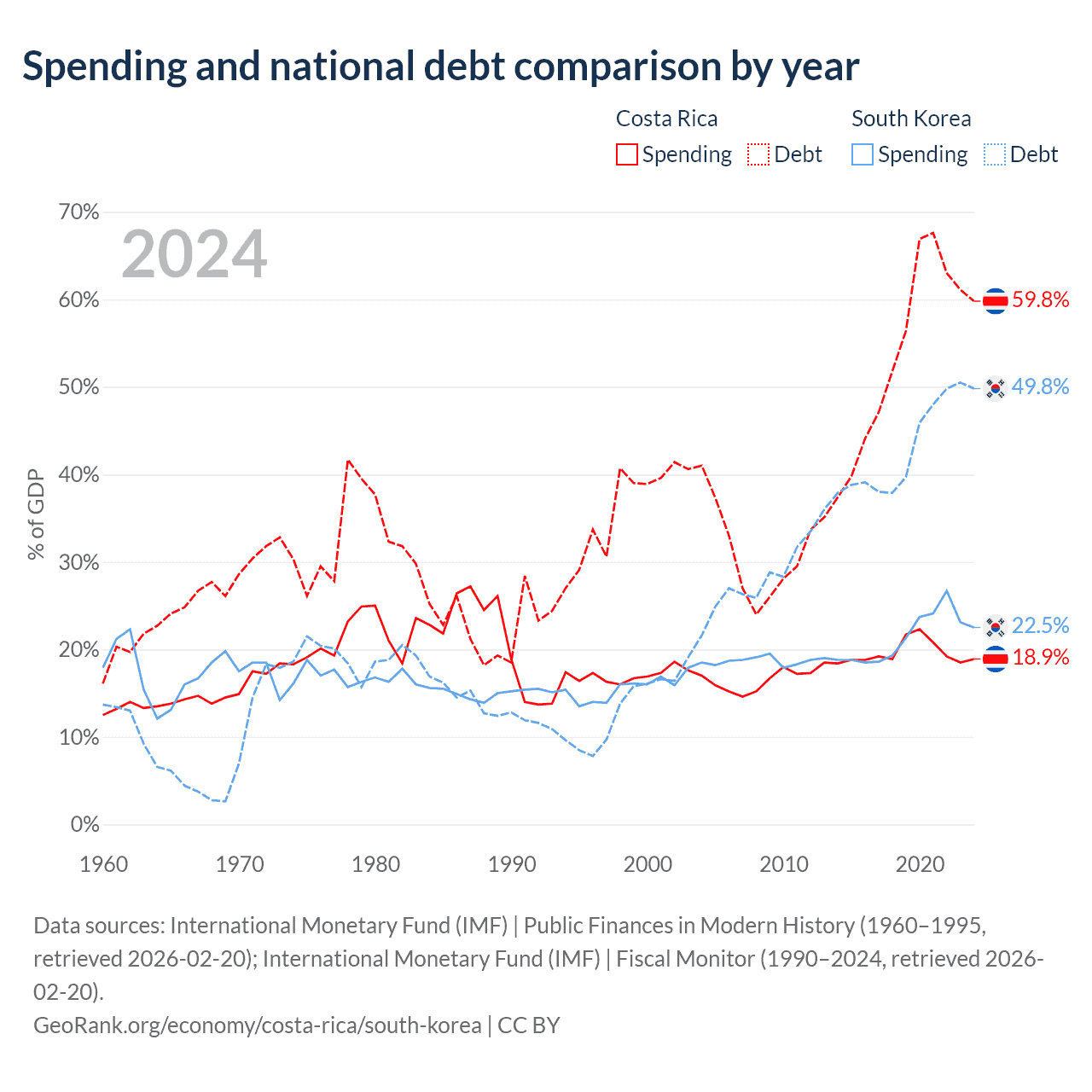 Costa Rica has $57B in government debt (59.8% of GDP), compared to $934B (49.8% of GDP) in South Korea.