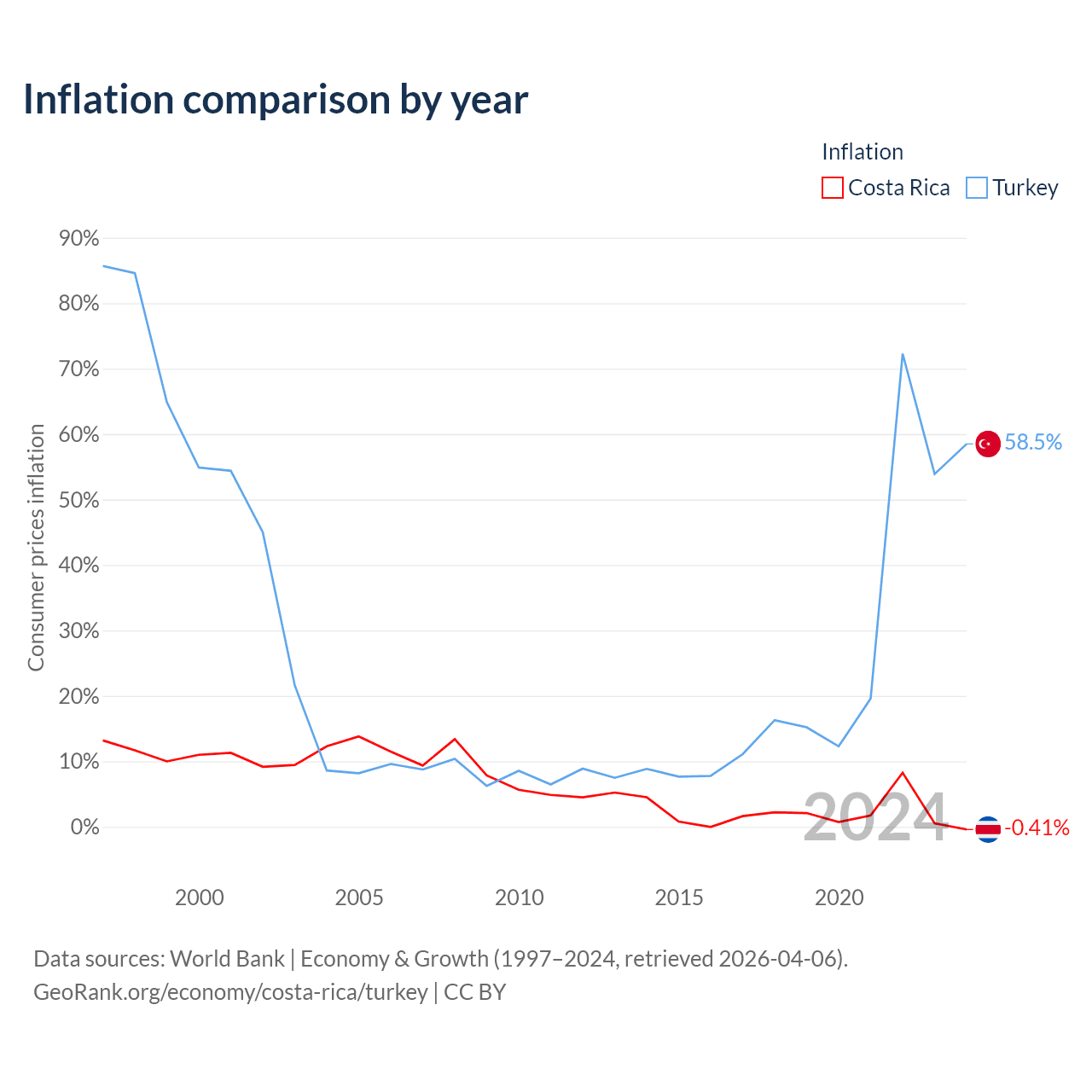 Data sources: World Bank | Economy & Growth (1960–2024, retrieved 2026-04-06).