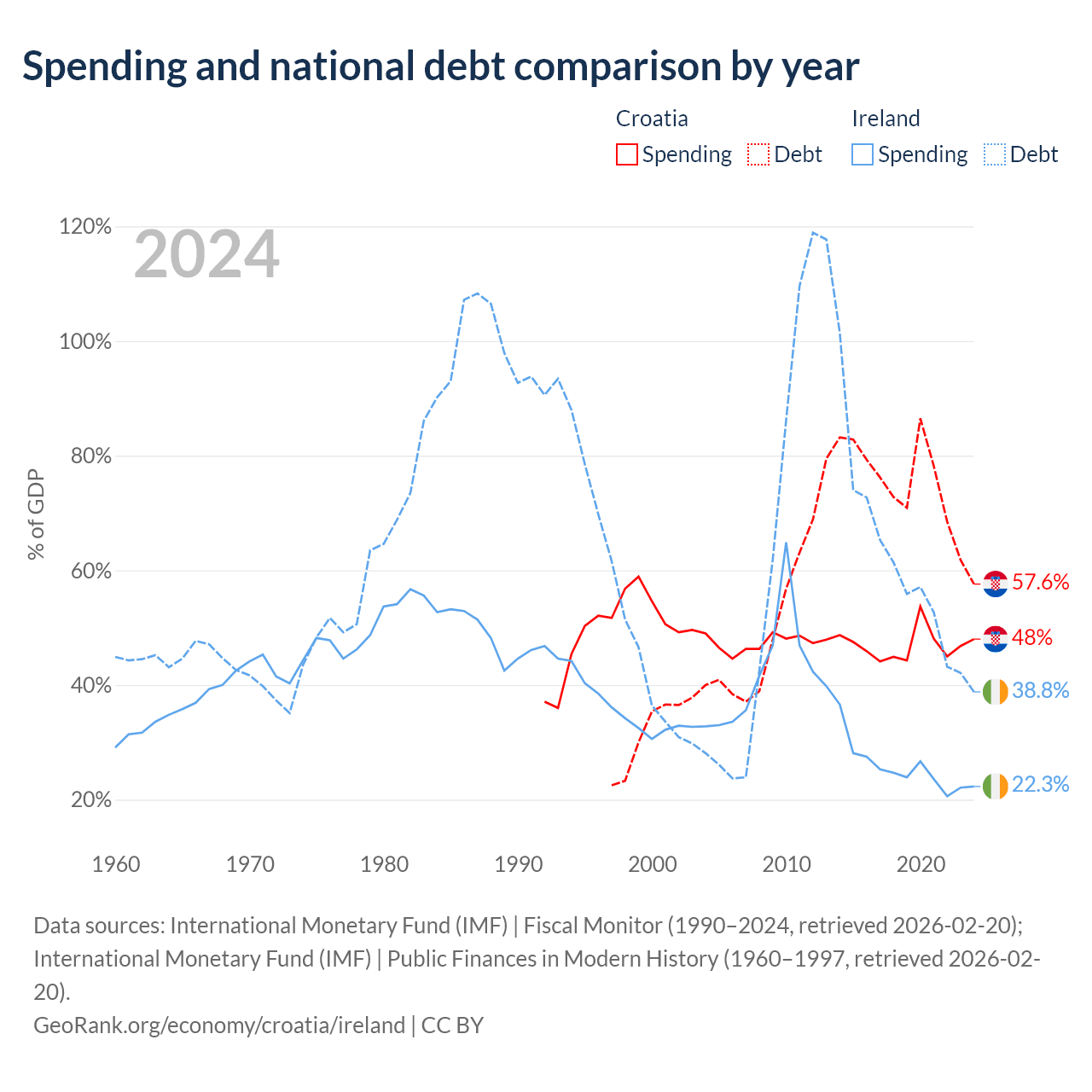 Croatia has $53.5B in government debt (57.6% of GDP), compared to $236B (38.8% of GDP) in Ireland.