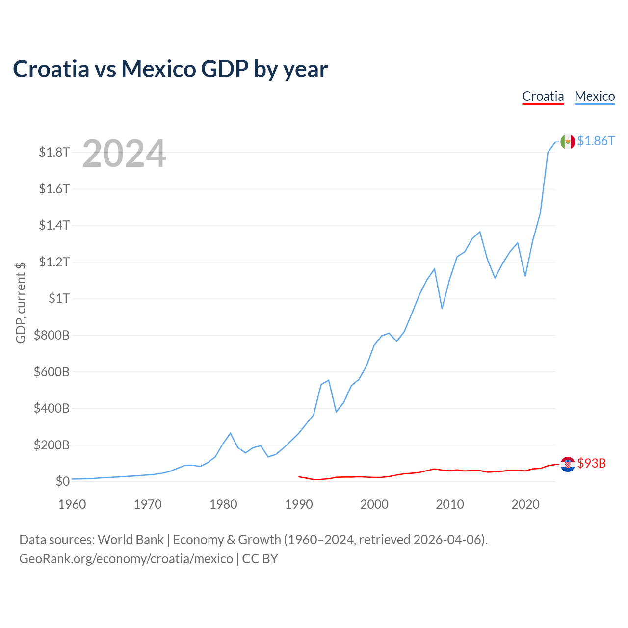 Croatia vs Mexico GDP by year
