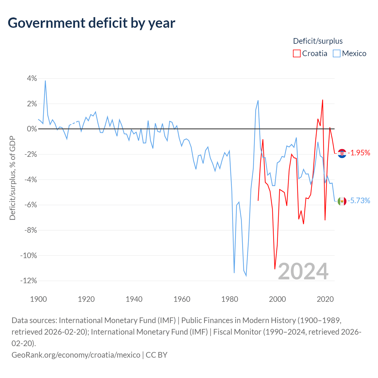 - International Monetary Fund (IMF) | Public Finances in Modern History (1900–1997, retrieved 2026-02-20)