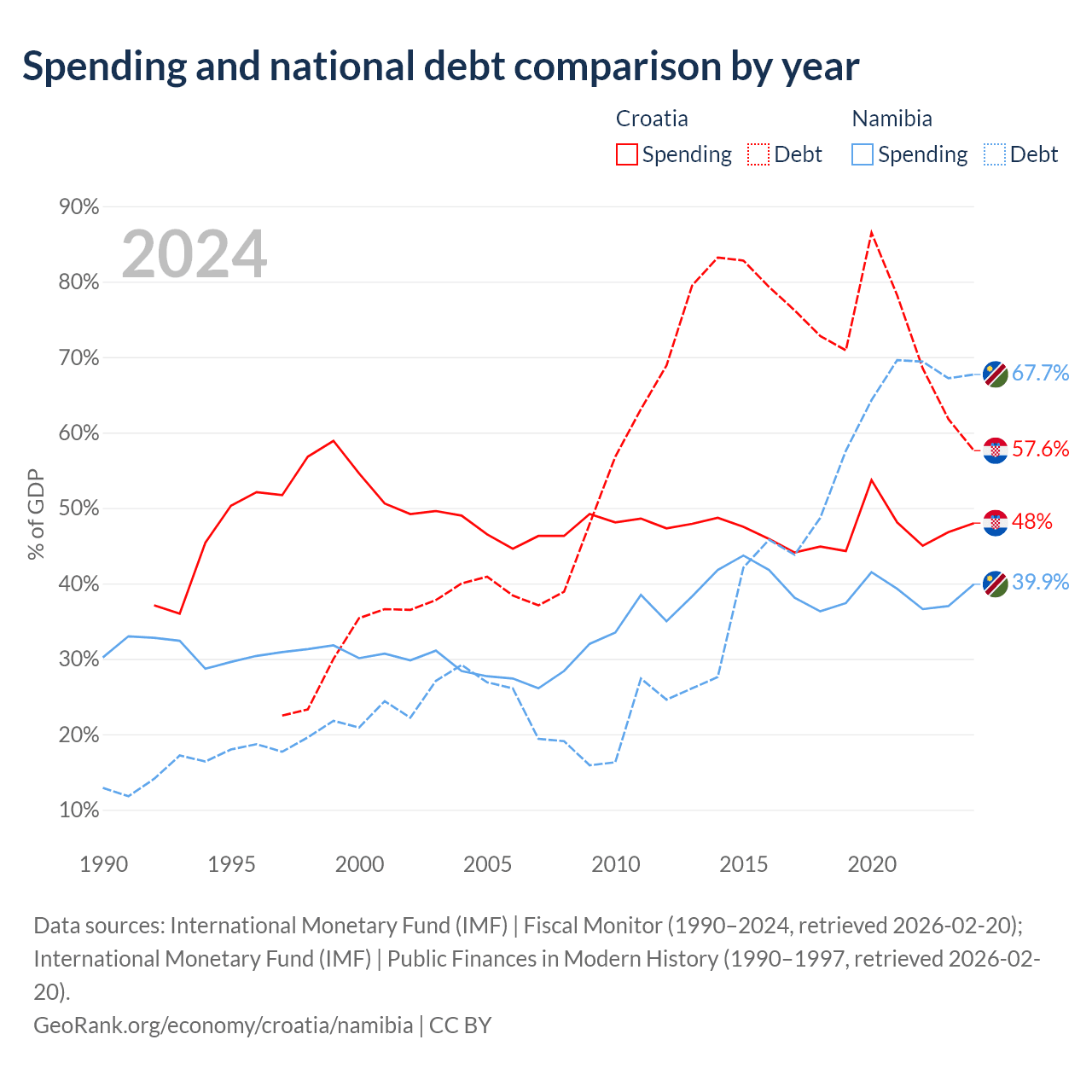 - International Monetary Fund (IMF) | Fiscal Monitor (1990–2024, retrieved 2026-02-20)