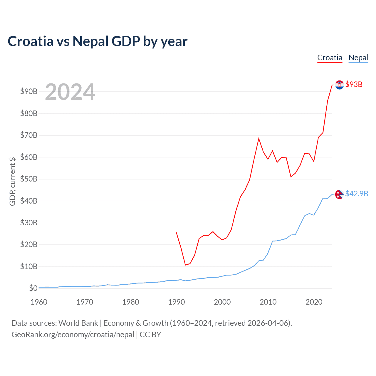 Croatia vs Nepal GDP by year