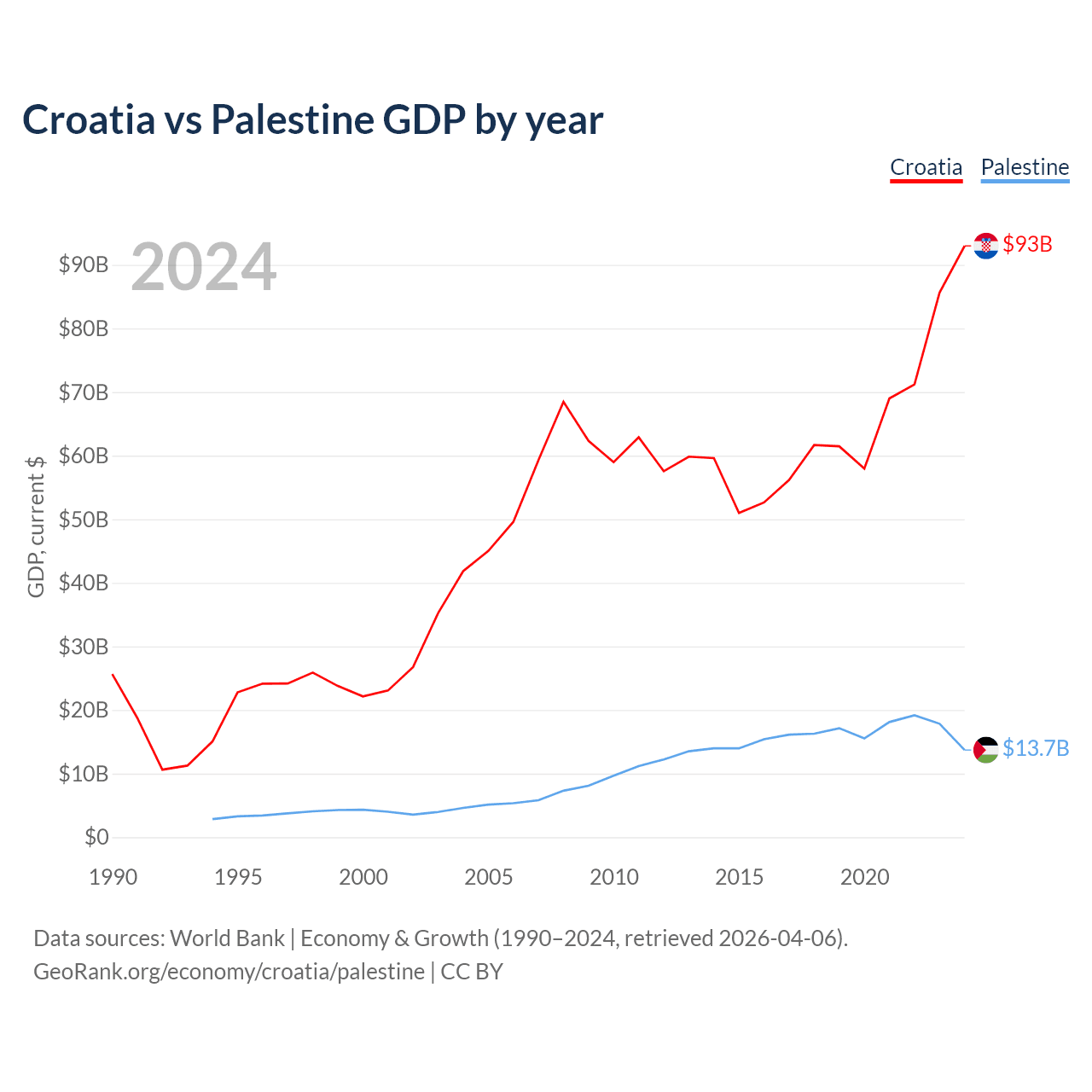 Croatia vs Palestine GDP by year