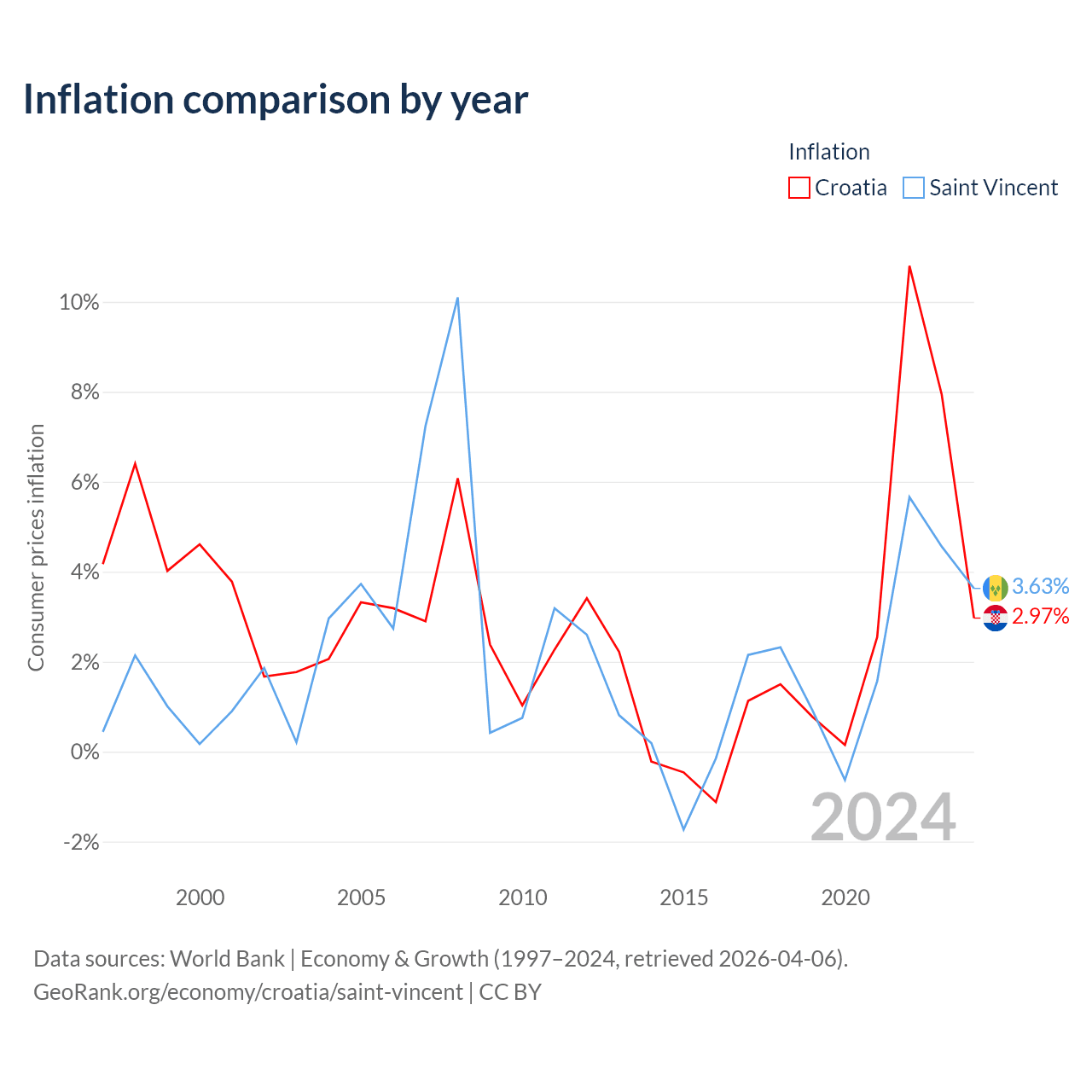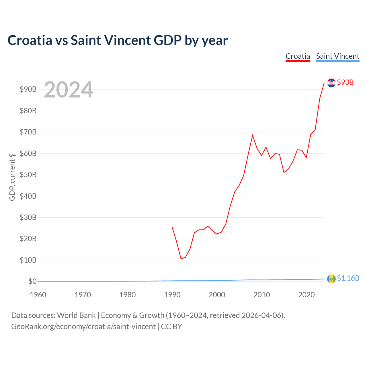 Croatia vs Saint Vincent GDP by year