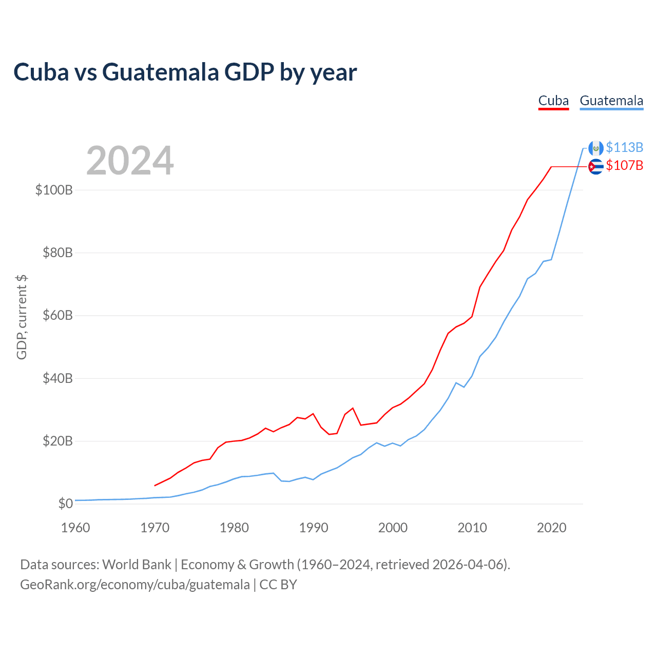 Cuba vs Guatemala GDP by year