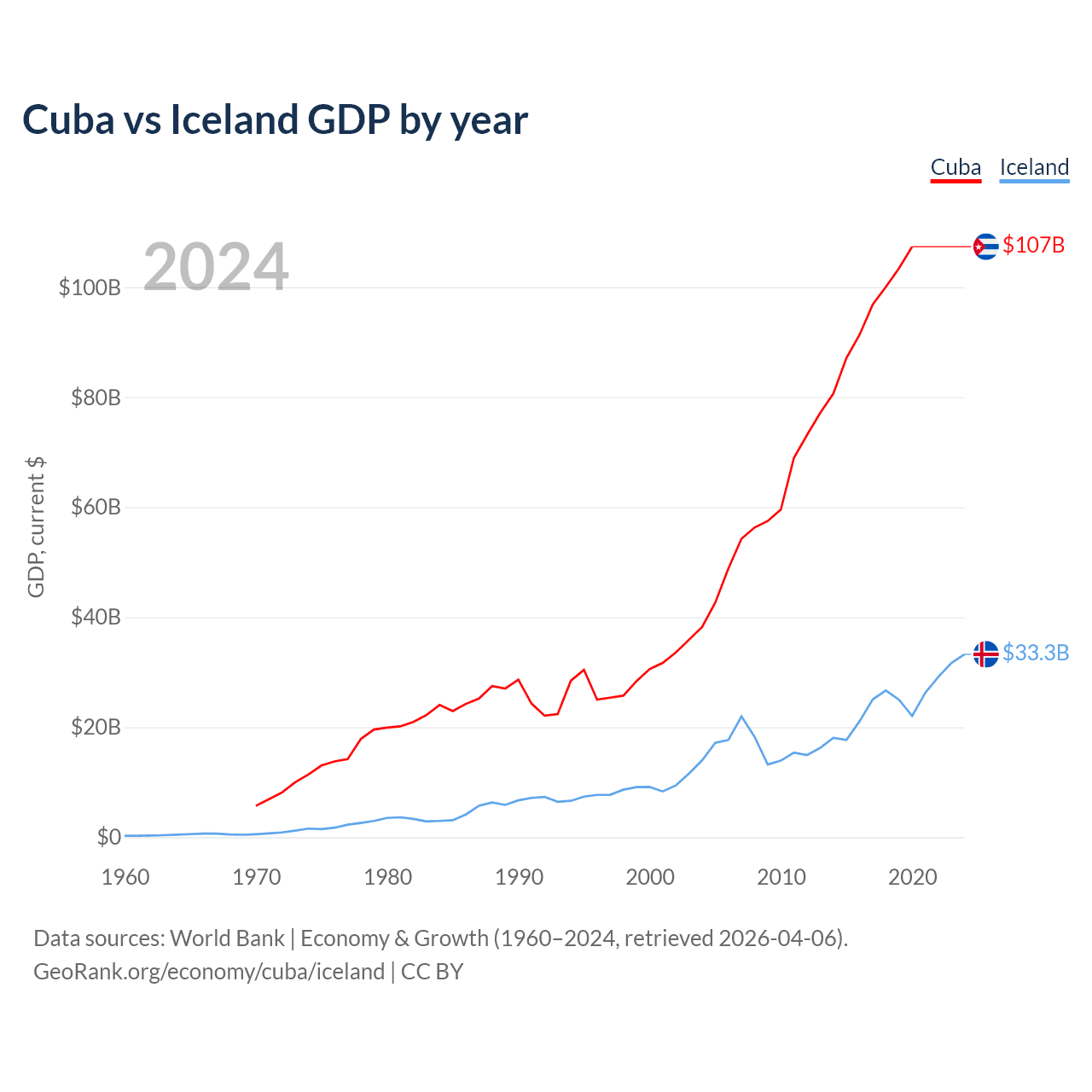 Cuba vs Iceland GDP by year