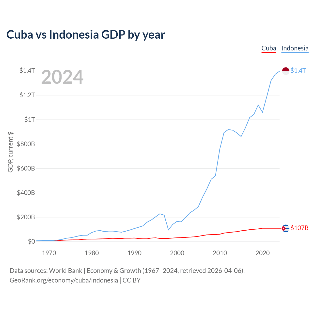 Cuba vs Indonesia GDP by year