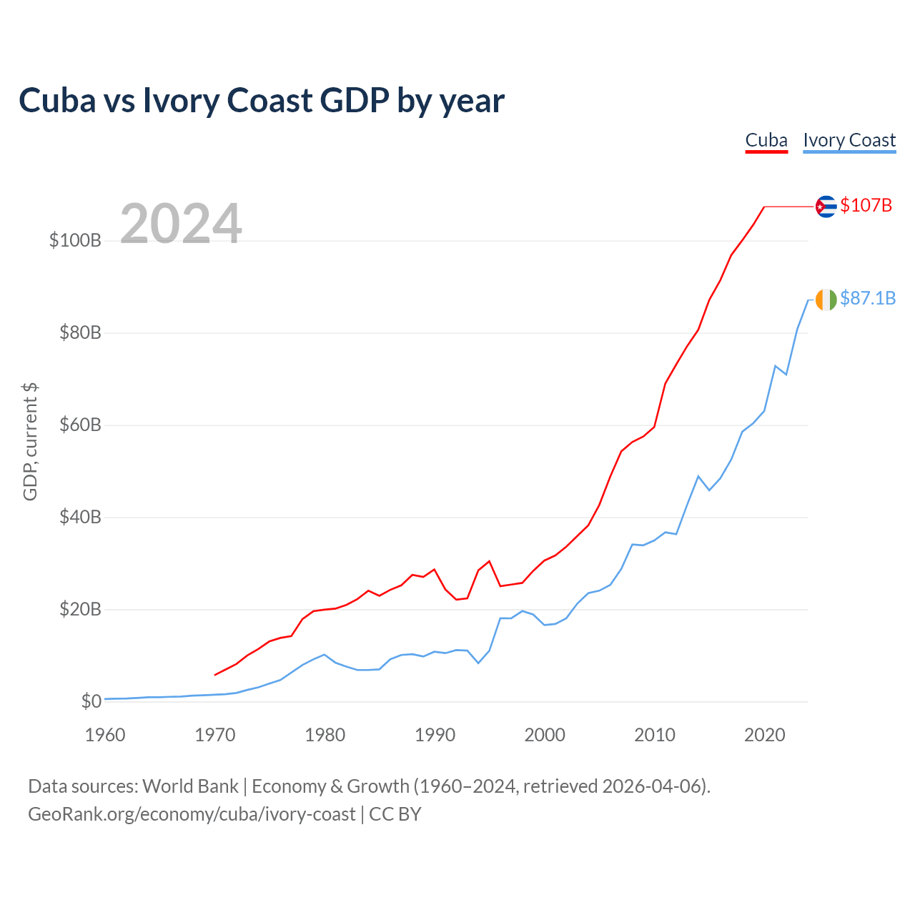 Cuba vs Ivory Coast GDP by year