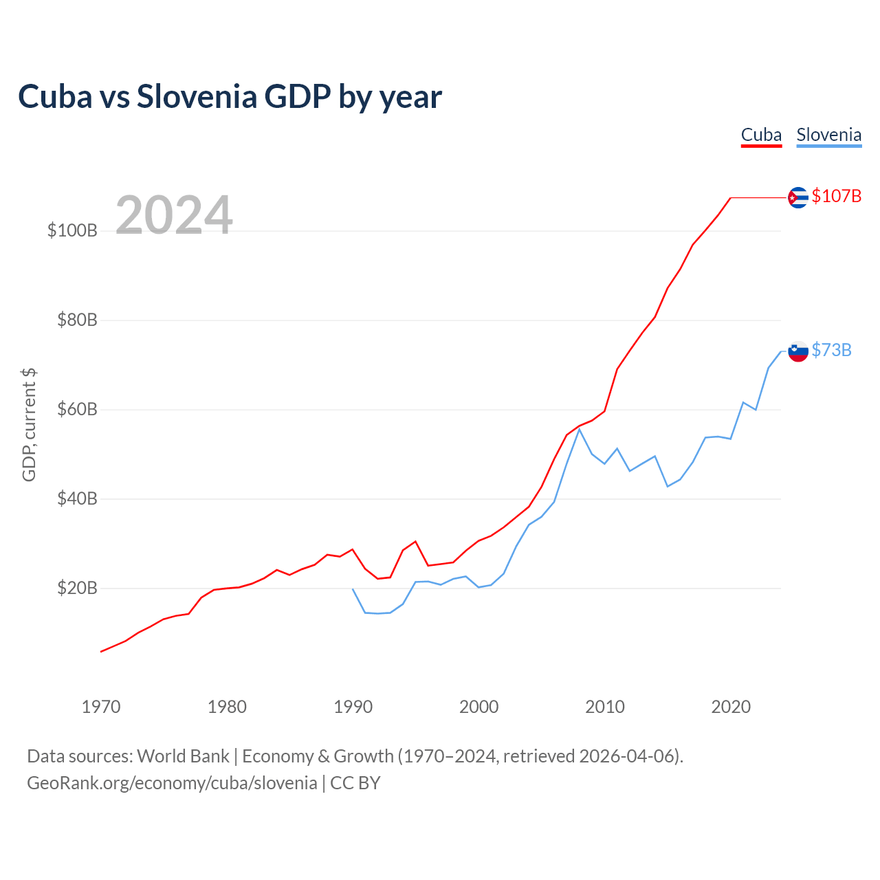 Cuba vs Slovenia GDP by year