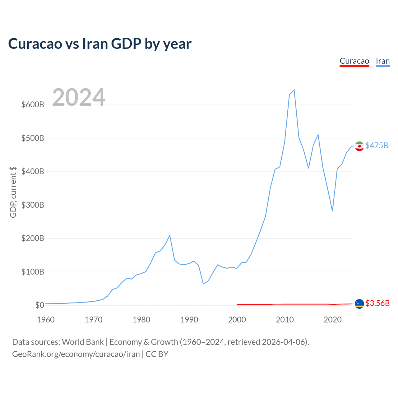 Curacao vs Iran GDP by year