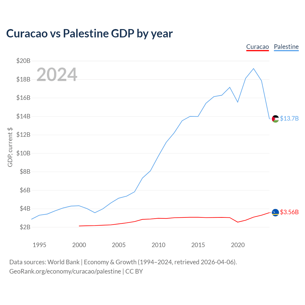 Curacao vs Palestine GDP by year